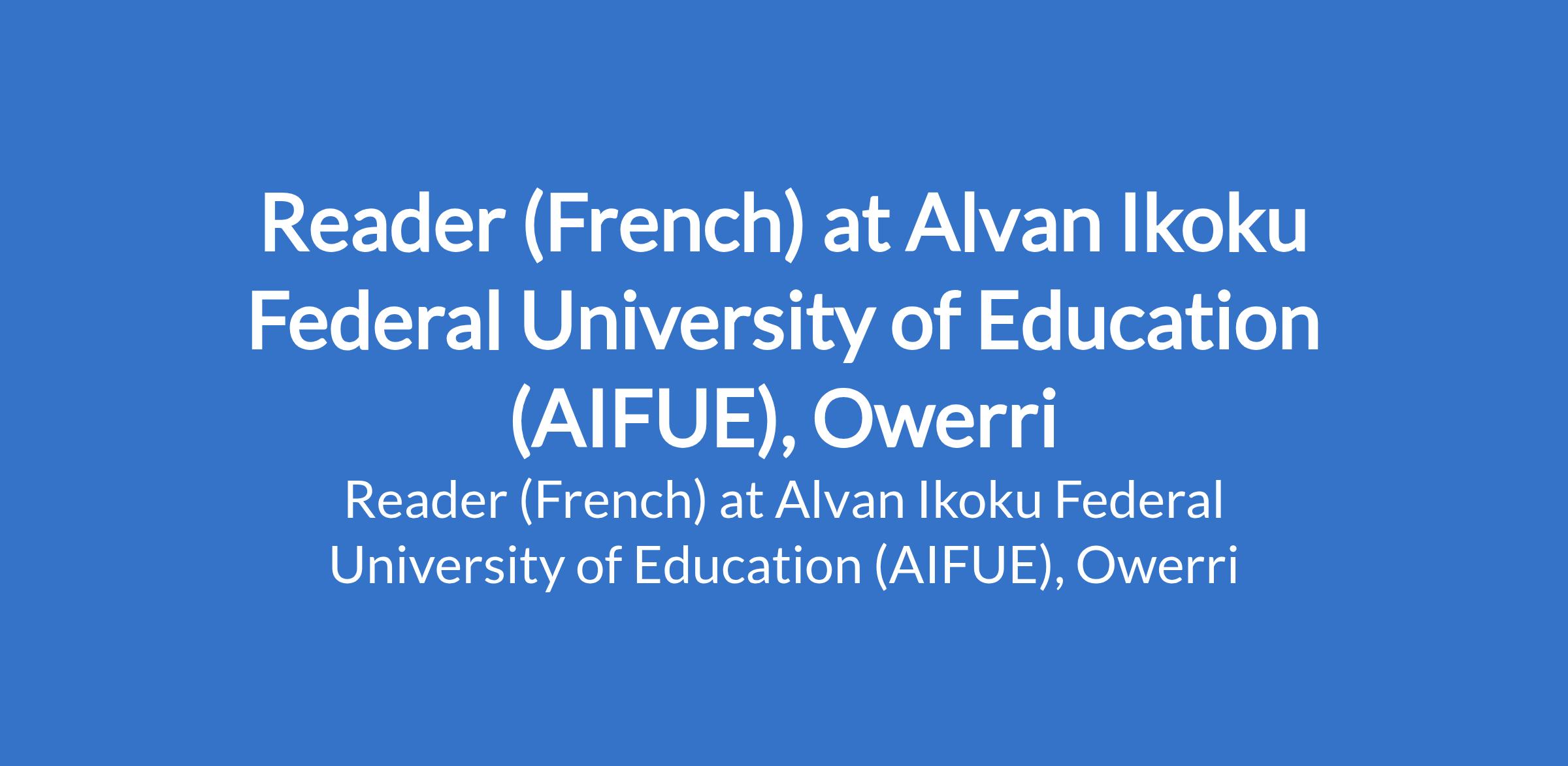 Alvan Ikoku Federal University of Education (AIFUE), Owerri invites applications from suitably qualified candidates for the position of: Reader (French). The position is located in Imo State. Interested candidates should possess a PhD Degree with not less than twelve (12) years of university teaching/research experience and a minimum of three (3) years as Senior Lecturer.