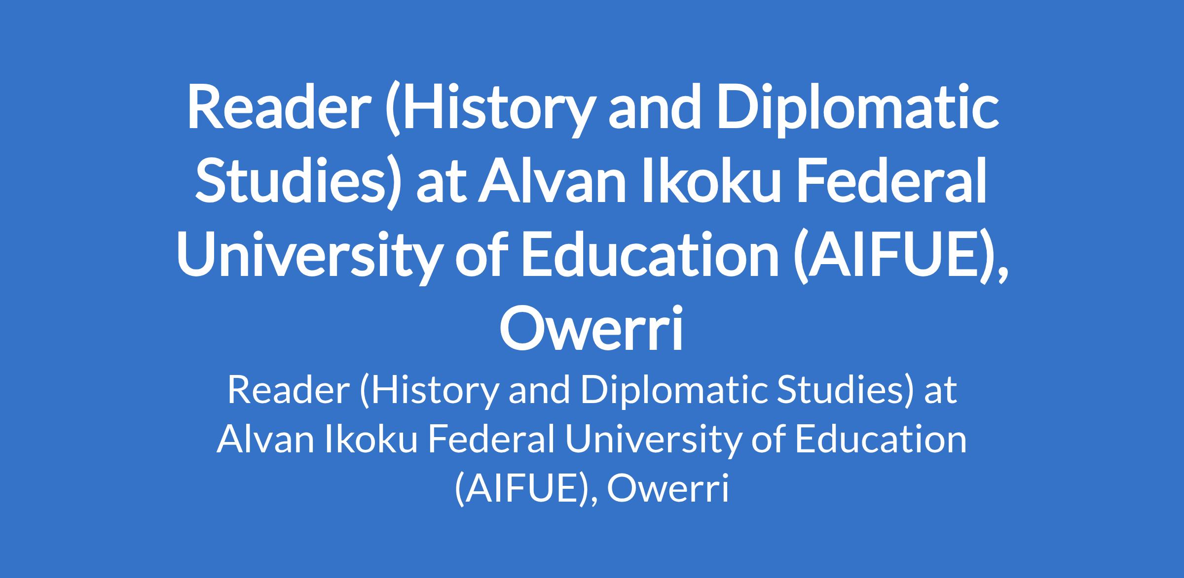 Alvan Ikoku Federal University of Education (AIFUE), Owerri invites applications from suitably qualified candidates for the position of: Reader (History and Diplomatic Studies). The position is located in Imo State. Interested candidates should possess a PhD Degree with not less than twelve (12) years of university teaching/research experience and a minimum of three (3) years as Senior Lecturer.