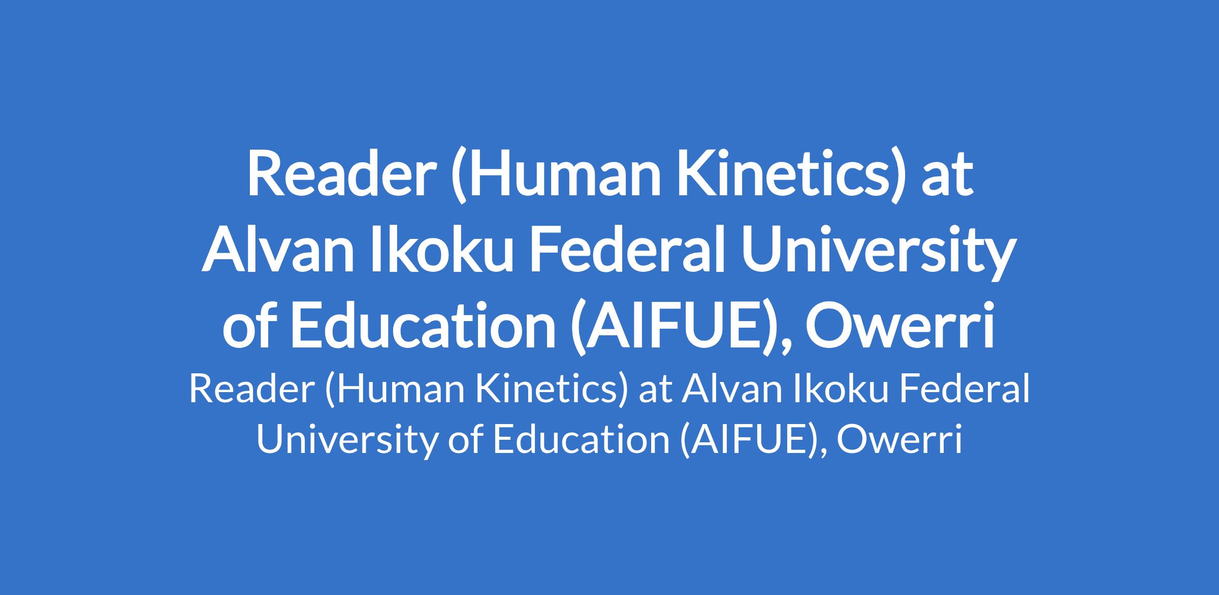 Alvan Ikoku Federal University of Education (AIFUE), Owerri invites applications from suitably qualified candidates for the position of: Reader (Human Kinetics). The position is located in Imo State. Interested candidates should possess a PhD Degree with not less than twelve (12) years of university teaching/research experience and a minimum of three (3) years as Senior Lecturer.