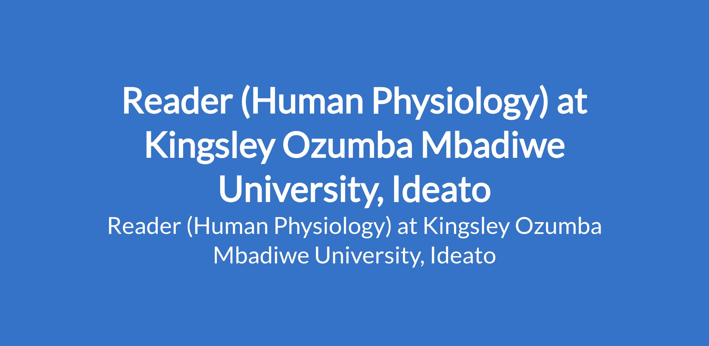 Kingsley Ozumba Mbadiwe University, Ideato invites applications for the position of: Reader (Human Physiology). The position is located in Imo State. Interested candidates should possess a Doctorate Degree in the relevant field with a minimum of ten (10) years post qualification experience in teaching and research in a university.