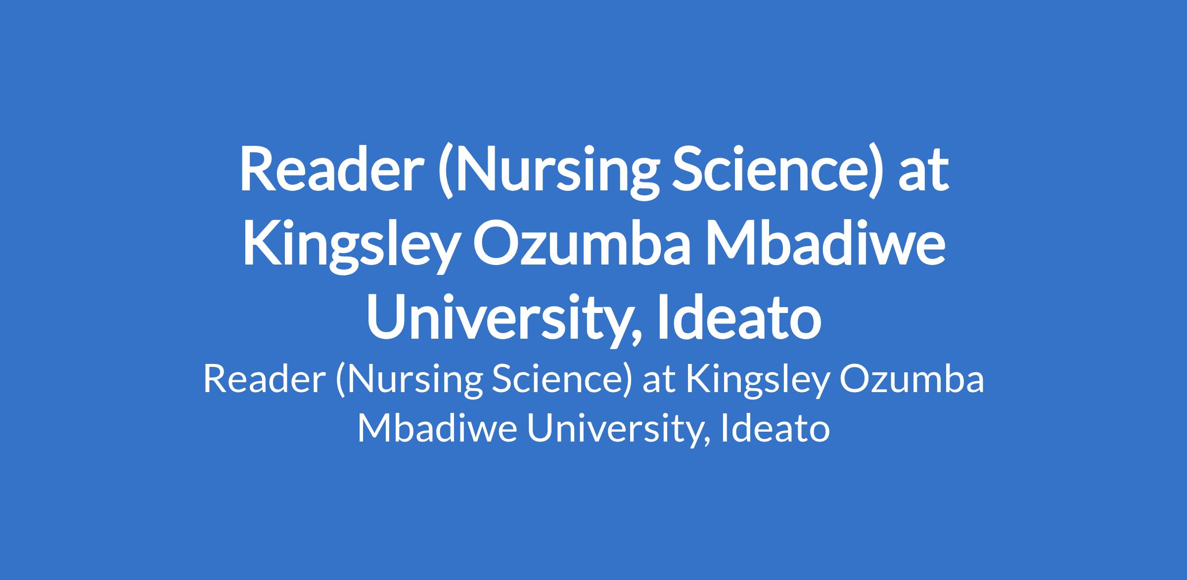 Kingsley Ozumba Mbadiwe University, Ideato invites applications for the position of: Reader (Nursing Science). The position is located in Imo State. Interested candidates should possess a Doctorate Degree in the relevant field with a minimum of ten (10) years post qualification experience in teaching and research in a university.