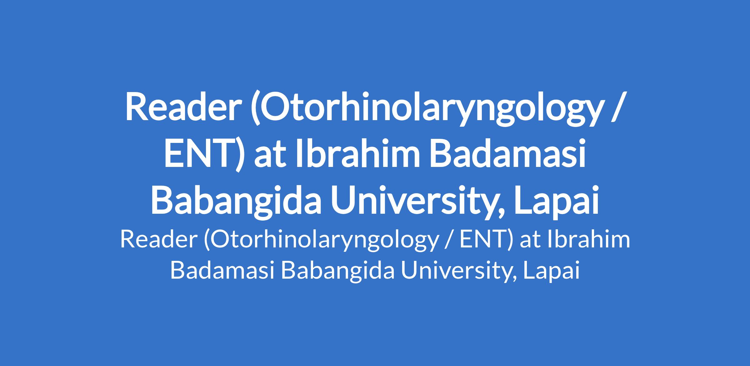 Ibrahim Badamasi Babangida University, Lapai invites applications from suitably qualified candidates to fill the position of: Reader (Otorhinolaryngology / ENT). The position is located in Niger State. Interested candidates should be holders of MBBS Degree from recognized Universities with PhD, Fellowship of the National Postgraduate Medical College of Nigeria or its equivalent in the relevant specialty/sub specialty with at least twelve (12) years teaching, research and administrative experience in a tertiary institution.