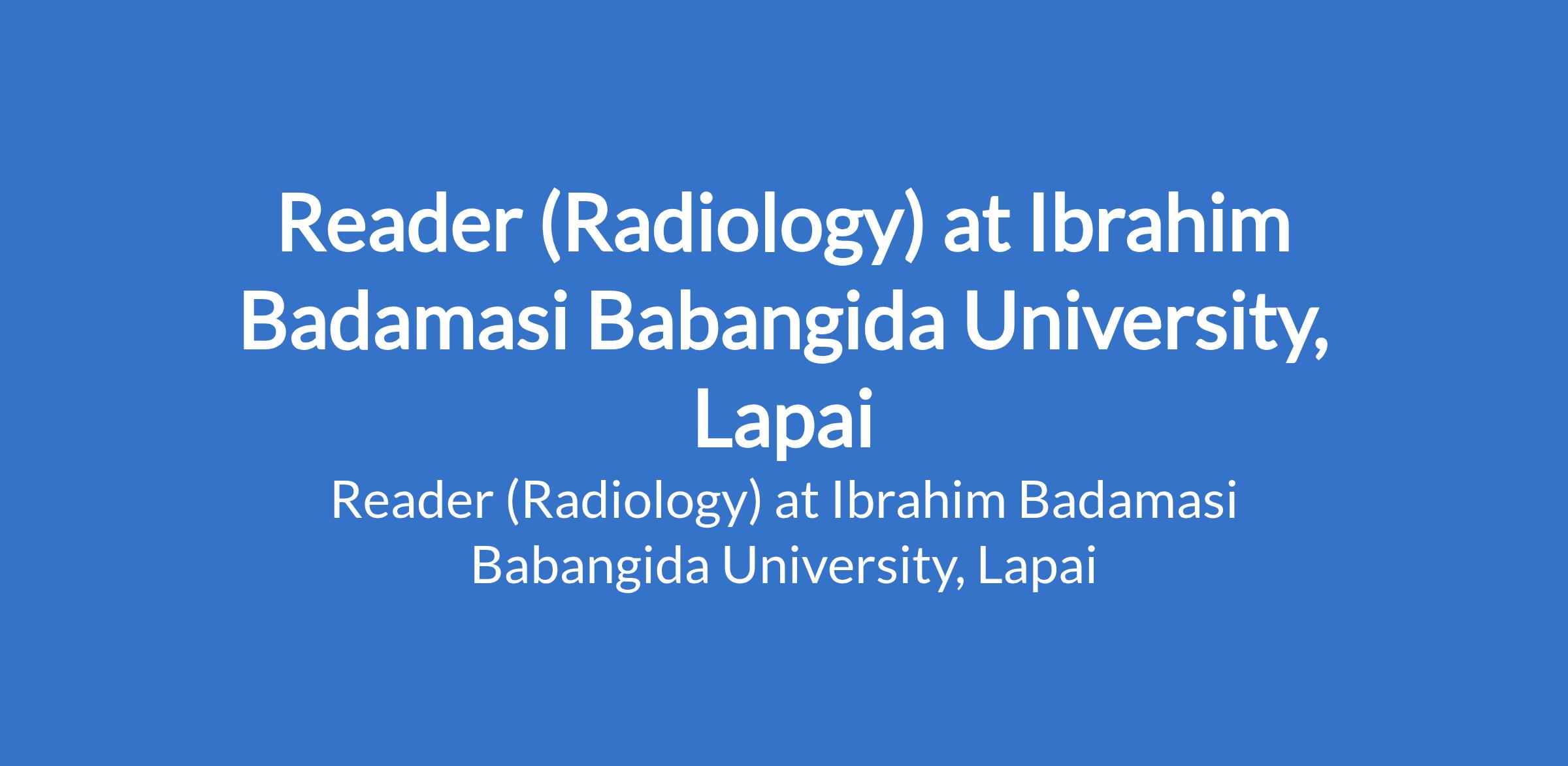 Ibrahim Badamasi Babangida University, Lapai invites applications from suitably qualified candidates to fill the position of: Reader (Radiology). The position is located in Niger State. Interested candidates should be holders of MBBS Degree from recognized Universities with PhD, Fellowship of the National Postgraduate Medical College of Nigeria or its equivalent in the relevant specialty/sub specialty with at least twelve (12) years teaching, research and administrative experience in a tertiary institution.