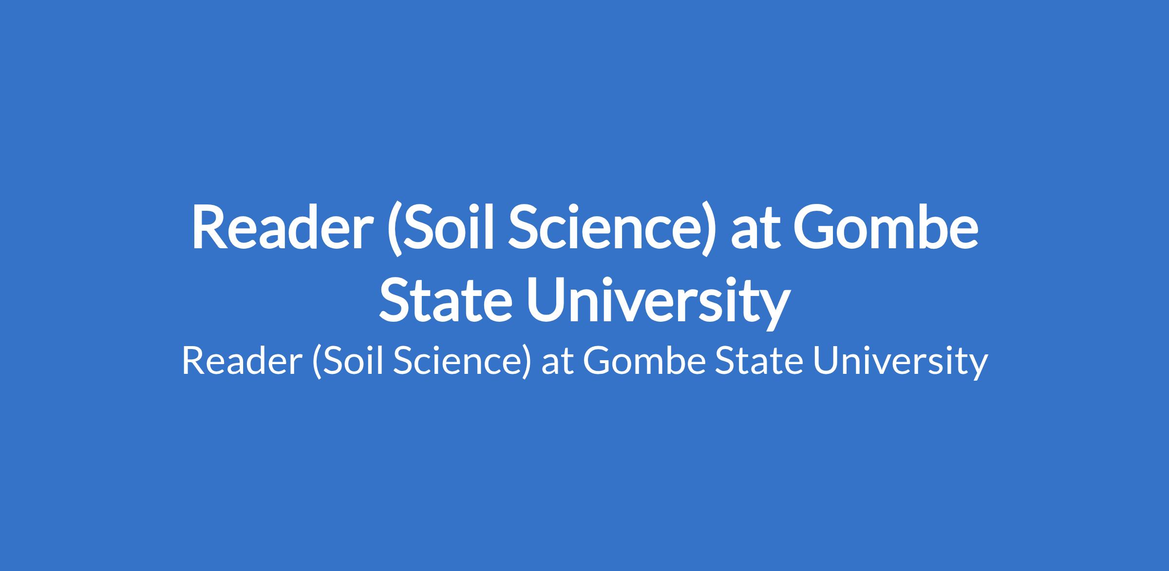 Gombe State University invites applications from suitable candidates to fill the position of: Reader (Soil Science). The position is located in Tudun - Wada, Gombe State. Interested candidates should possess a Ph.D Degree in a relevant discipline with 10 - 12 years of teaching / research experience; a minimum of three years as Senior Lecturer and at least 60 publication points with evidence of postgraduate supervision.
