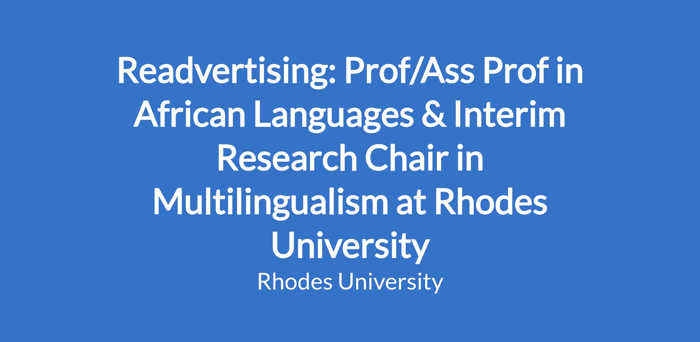 Readvertising: Prof/Ass Prof in African Languages & Interim Research Chair in Multilingualism at Rhodes University