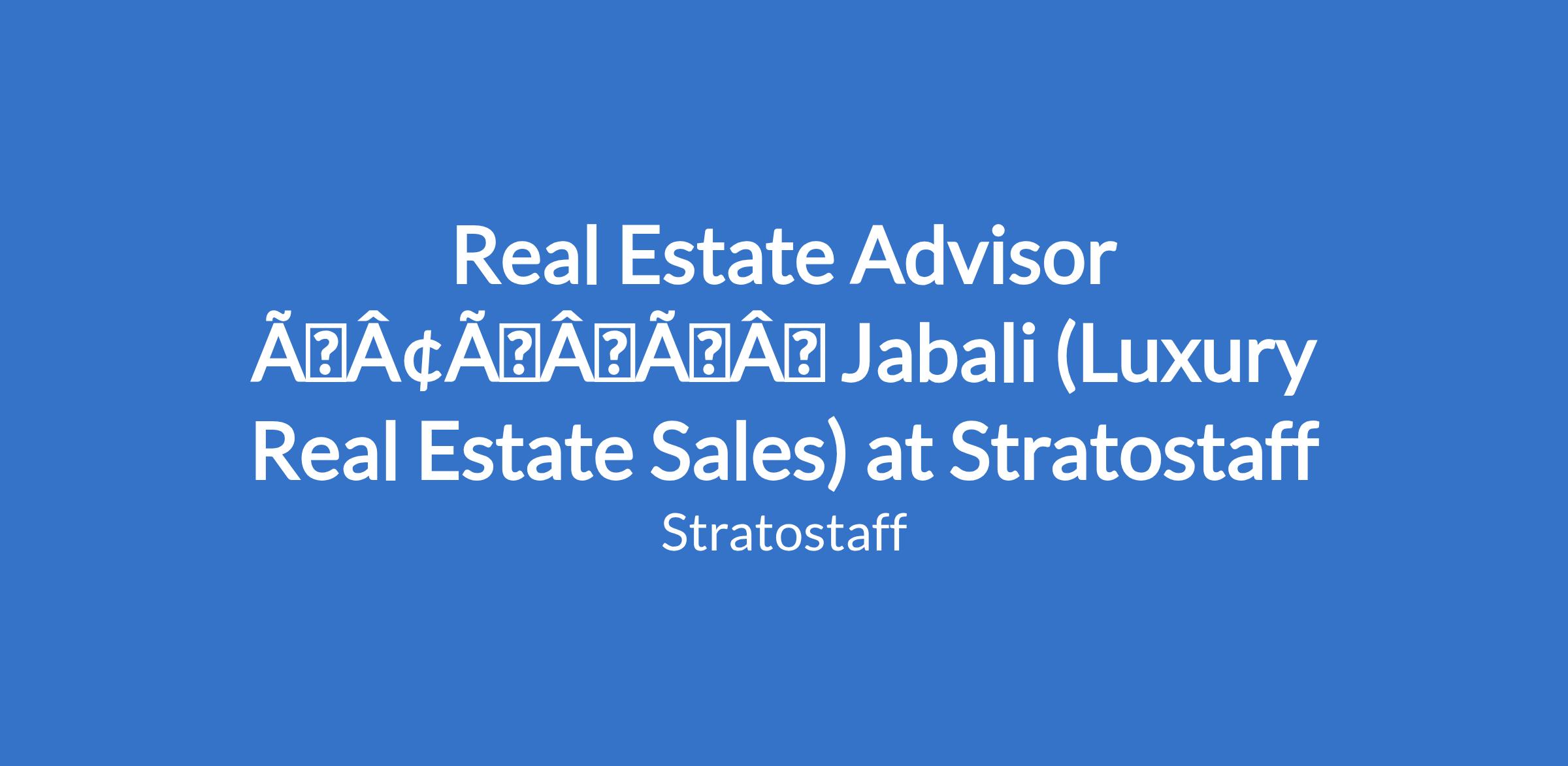 Real Estate Advisor âÃÂàJabali (Luxury Real Estate Sales) at Stratostaff