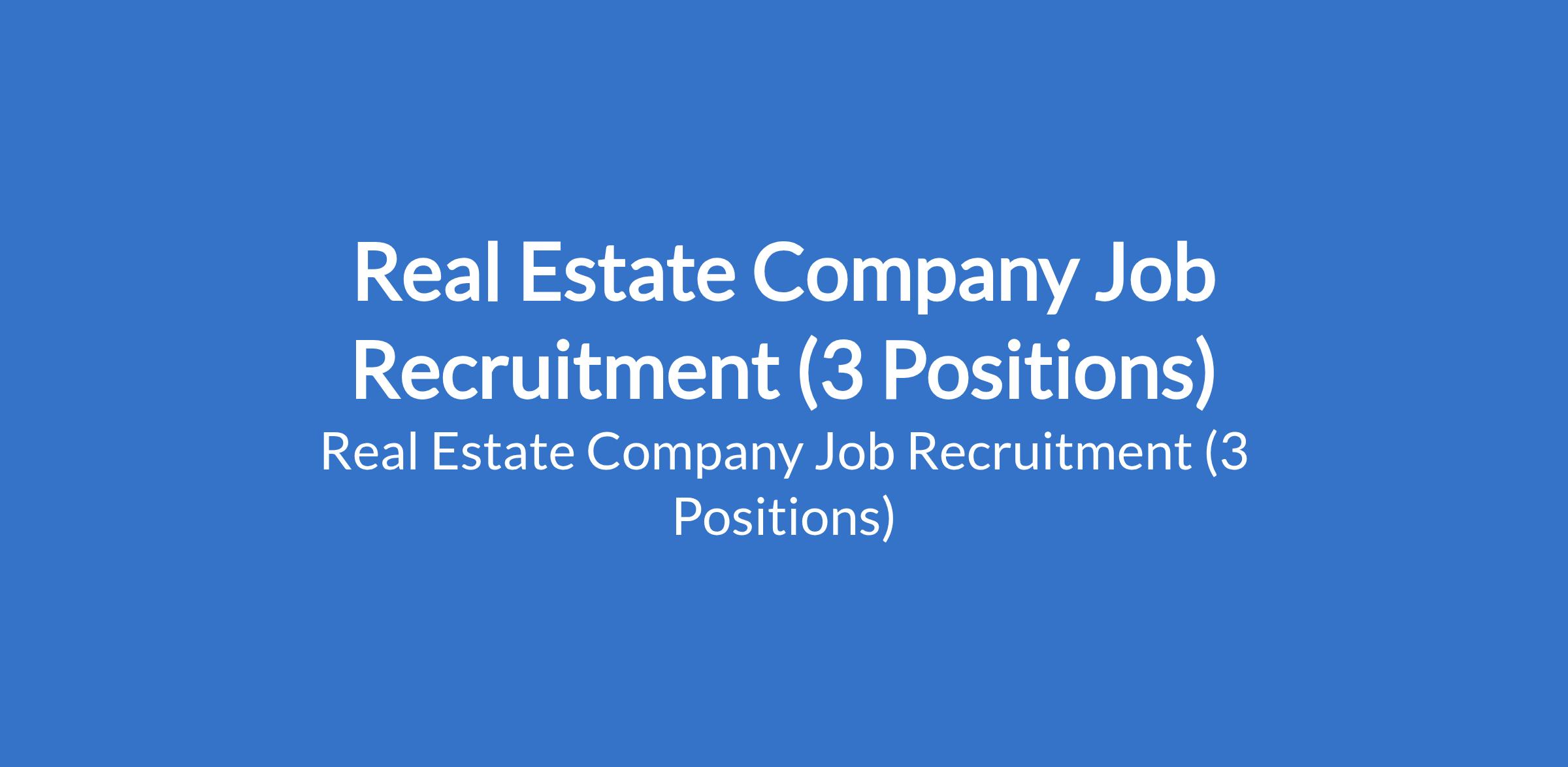 A Real Estate Company is recruiting suitable candidates to fill the following positions: Project Director, Head of Sales, and Marketing Agent.