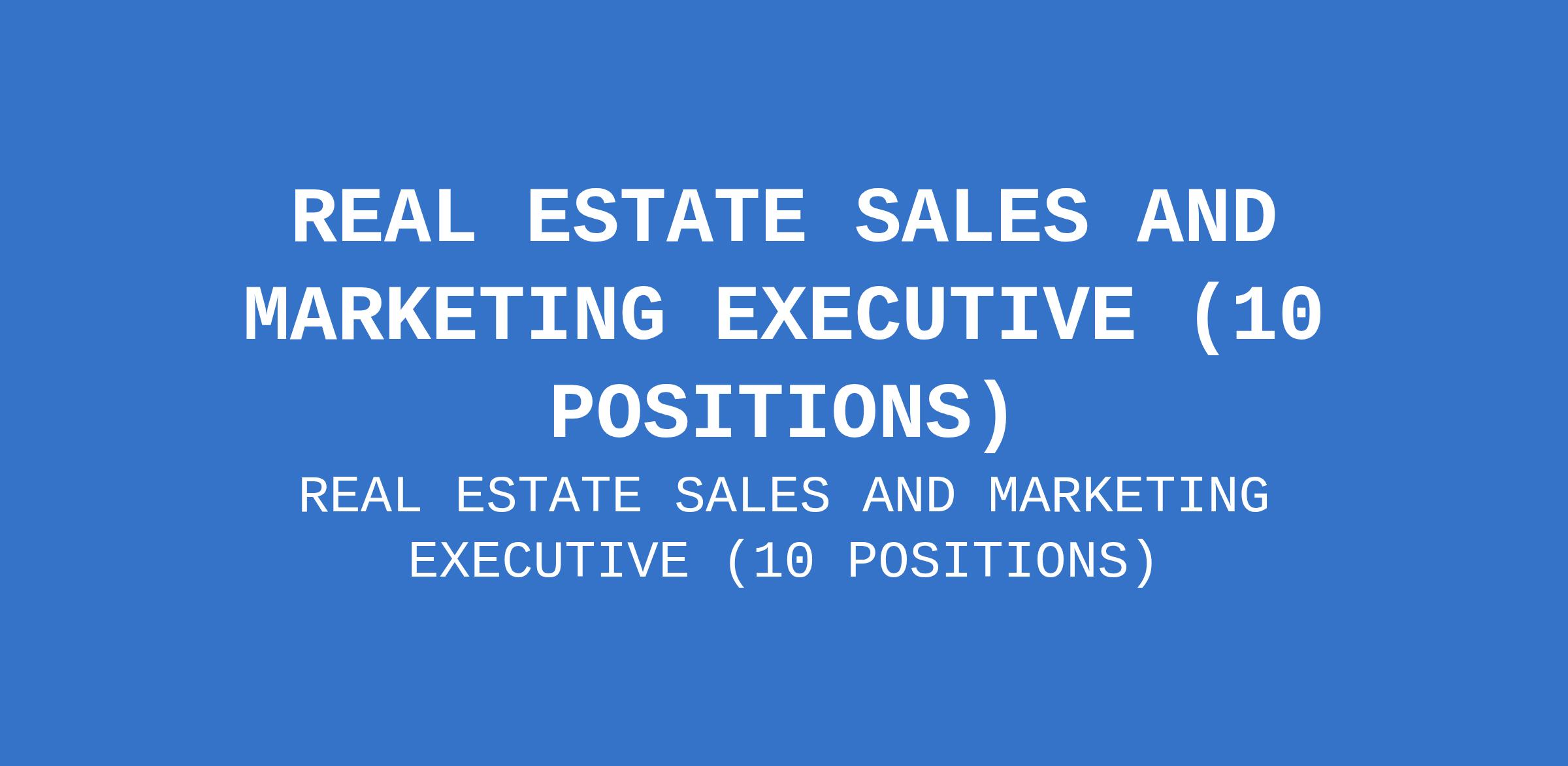 REAL ESTATE SALES AND MARKETING EXECUTIVE (10 POSITIONS)
