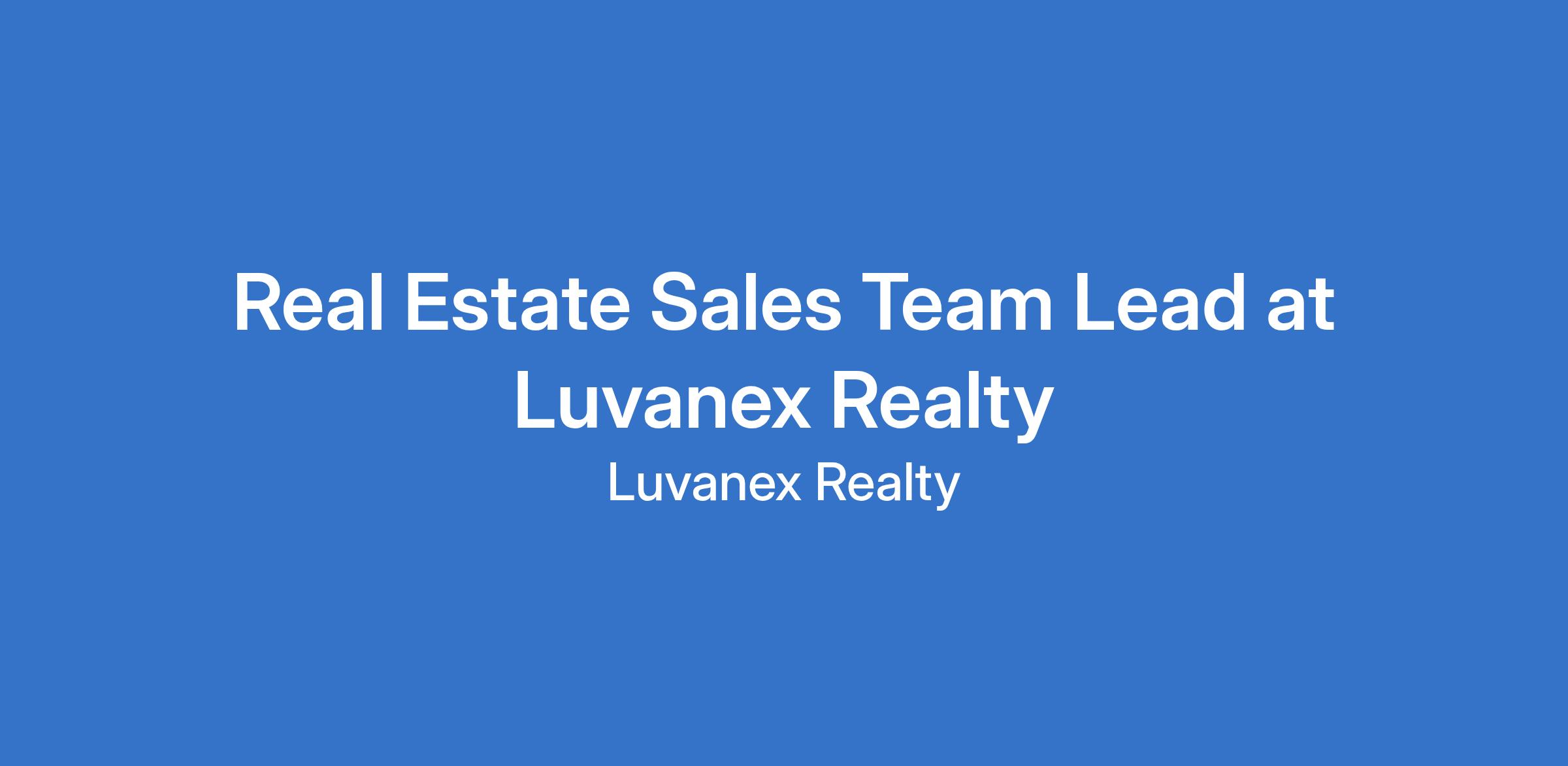 Real Estate Sales Team Lead at Luvanex Realty