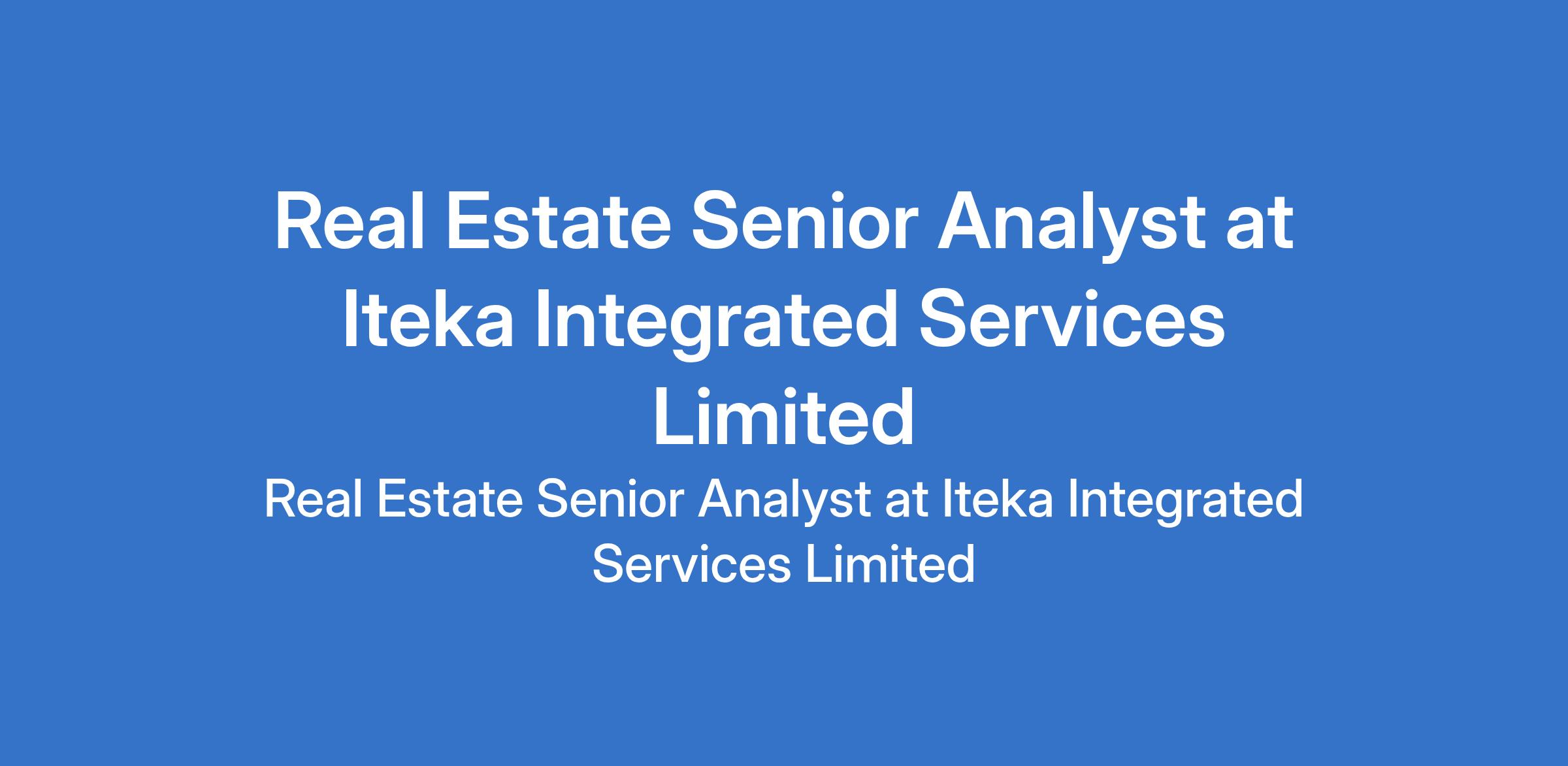 Iteka Integrated Services Limited is recruiting to fill the position of: Real Estate Senior Analyst. The position is located in Abuja (FCT). Interested candidates should possess a Bachelors Degree in Finance, Construction, Real Estate, or related field with 35 years of post-graduate experience in real estate investment, private equity, asset management, or corporate finance.