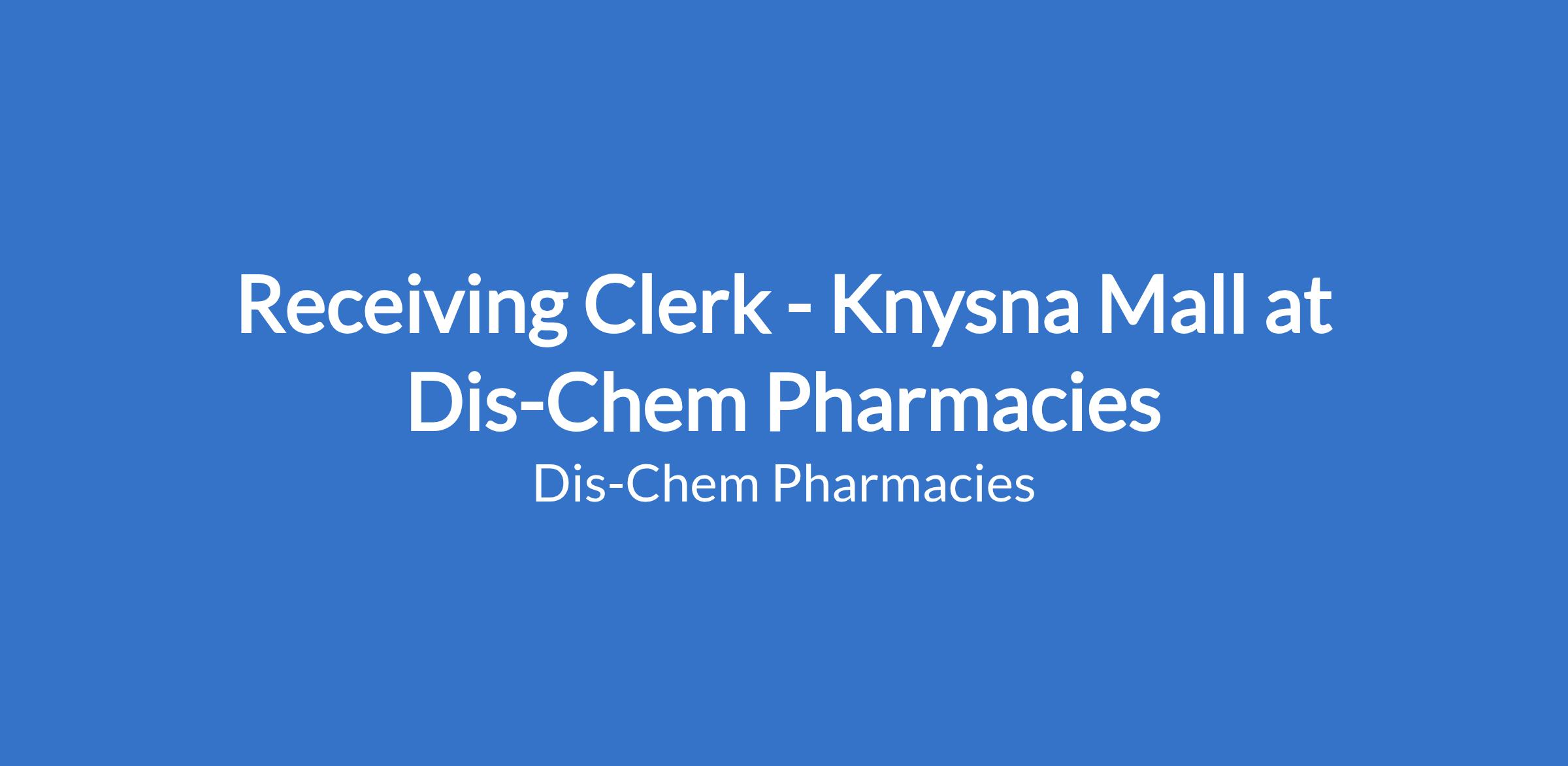 Dis-Chem Pharmacies' requires a Receiving Clerk for their Knysna Mall store. You will ensure the efficient and accurate receiving and packing of stock in line with Dis-Chem's SOPs and requirements, and customer needs within the store.