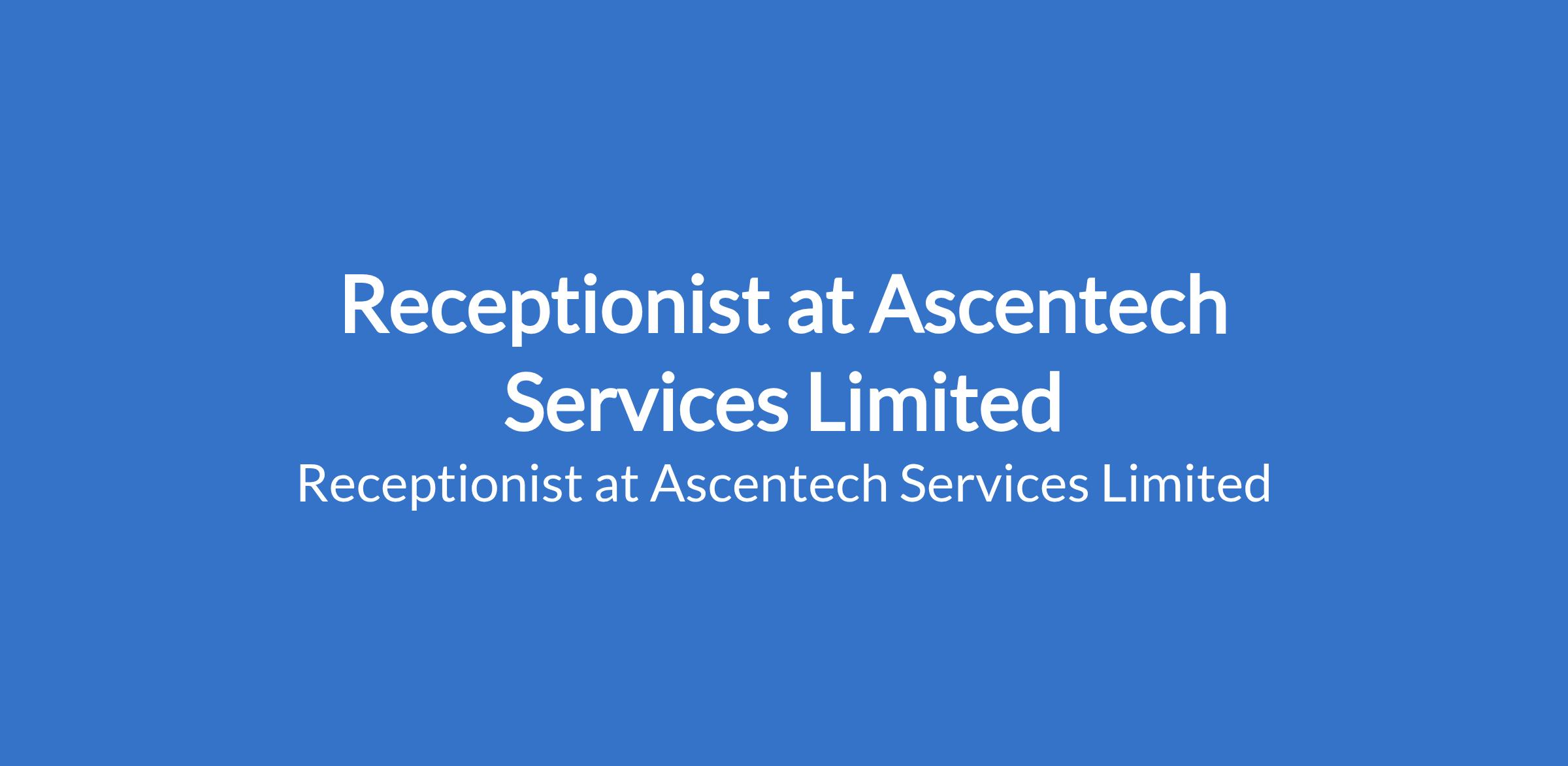 Ascentech Services Limited is recruiting to fill the position of: Receptionist. The position is located in Ilupeju, Lagos State. Salary: N300,000 - N400,000 per month. Interested candidates should a possess a Bachelors Degree or Diploma in Business Administration, Healthcare Administration, or a related field with 58 years of proven experience in a receptionist, front desk role or customer service, preferably within a hospital, clinic, or healthcare facility.