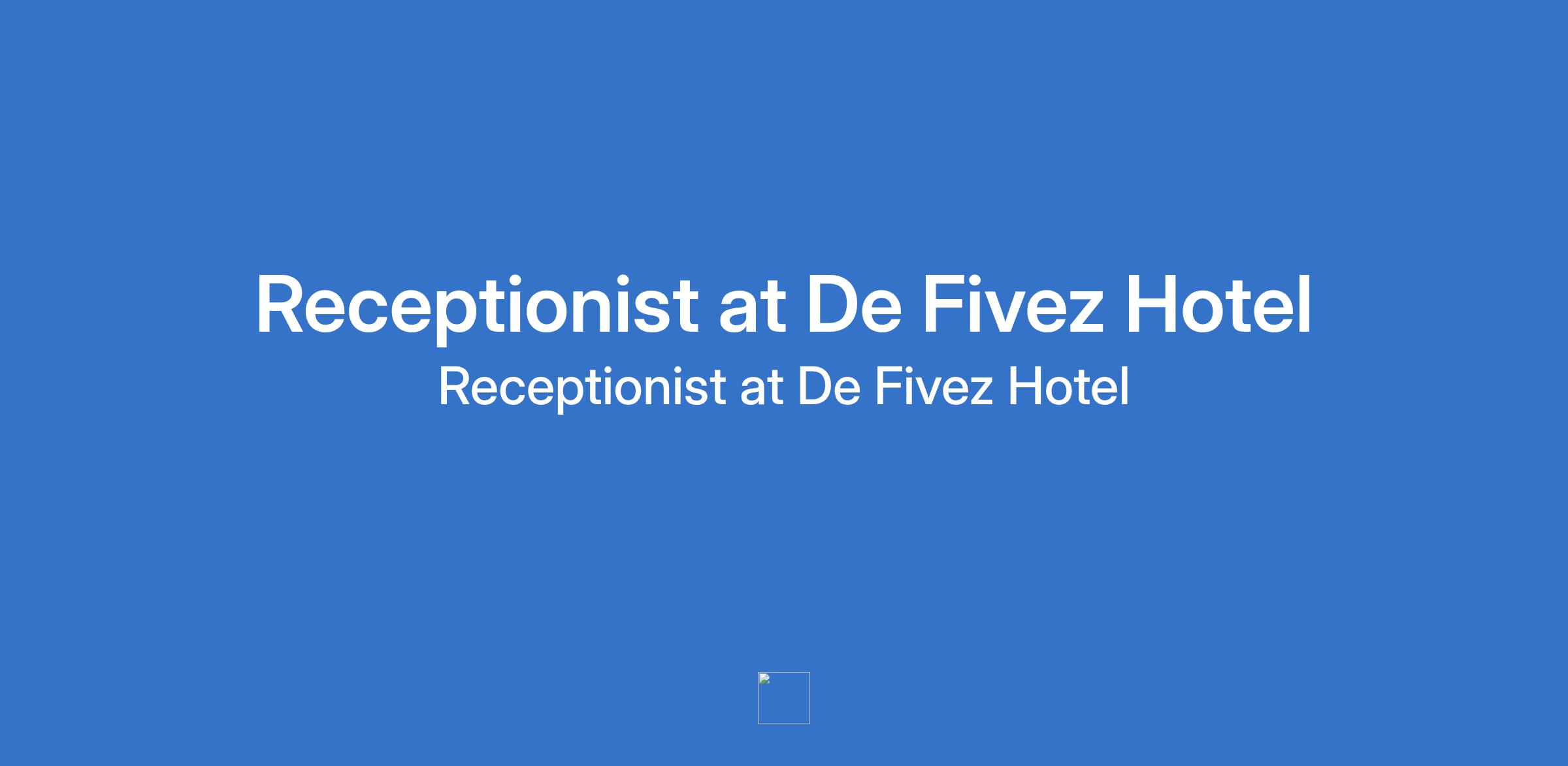 De Fivez Hotel is recruiting to fill the position of: Receptionist. The position is located in Lekki Phase 1, Lagos State. Salary: N80,000 per month. Interested candidates should possess an OND qualification with 2 - 3 years of relevant work experience.