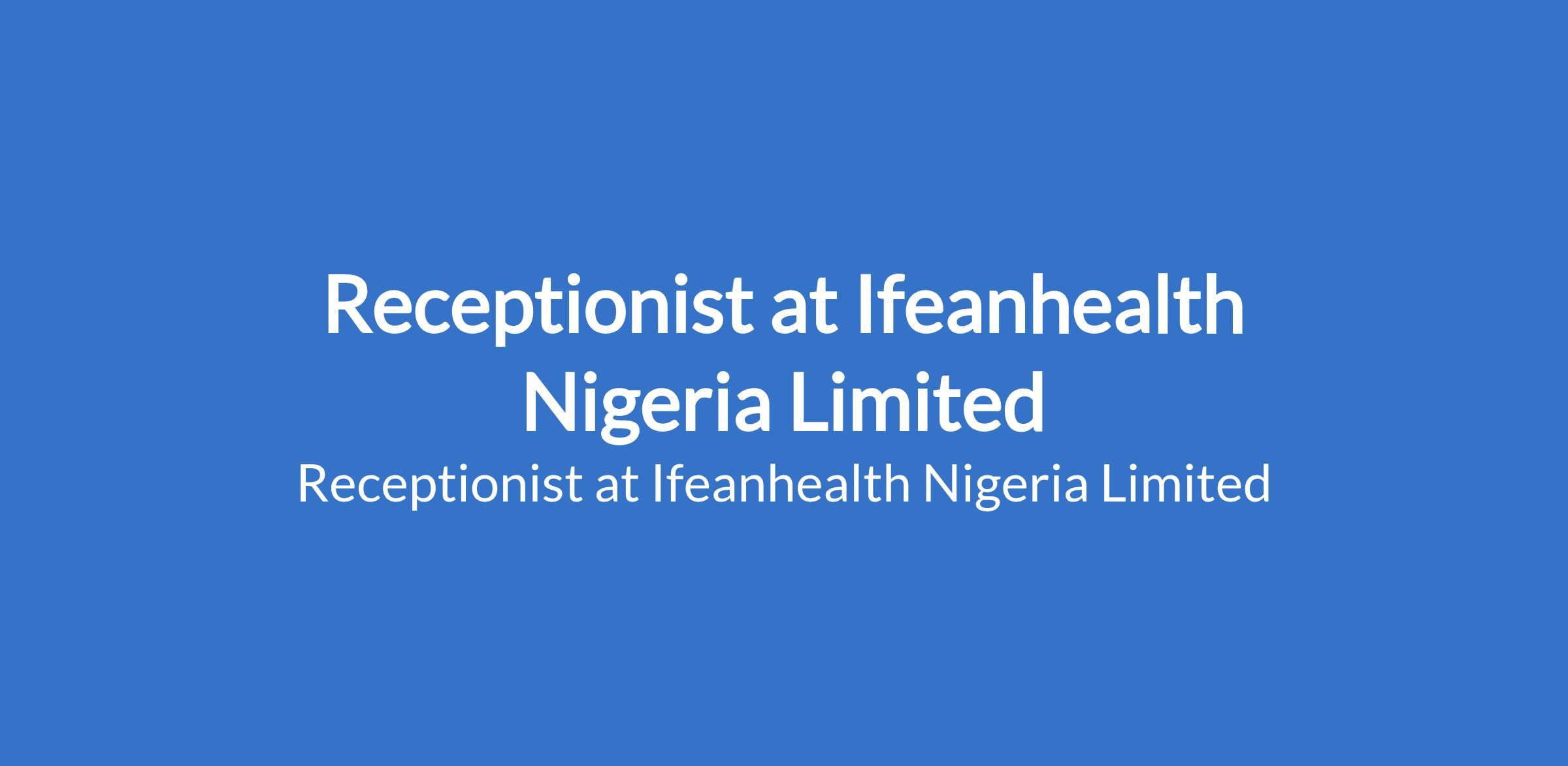 Receptionist at Ifeanhealth Nigeria Limited