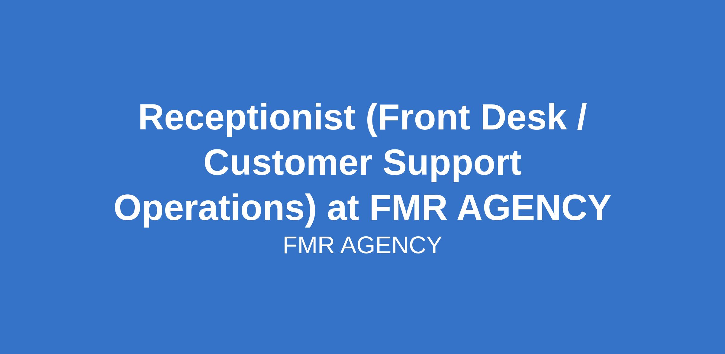 Receptionist (Front Desk / Customer Support Operations) at FMR AGENCY