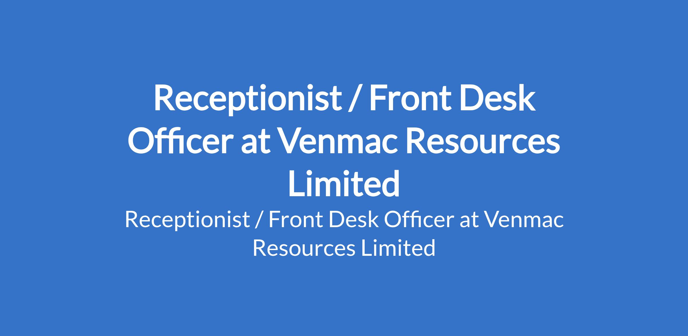 Receptionist / Front Desk Officer at Venmac Resources Limited