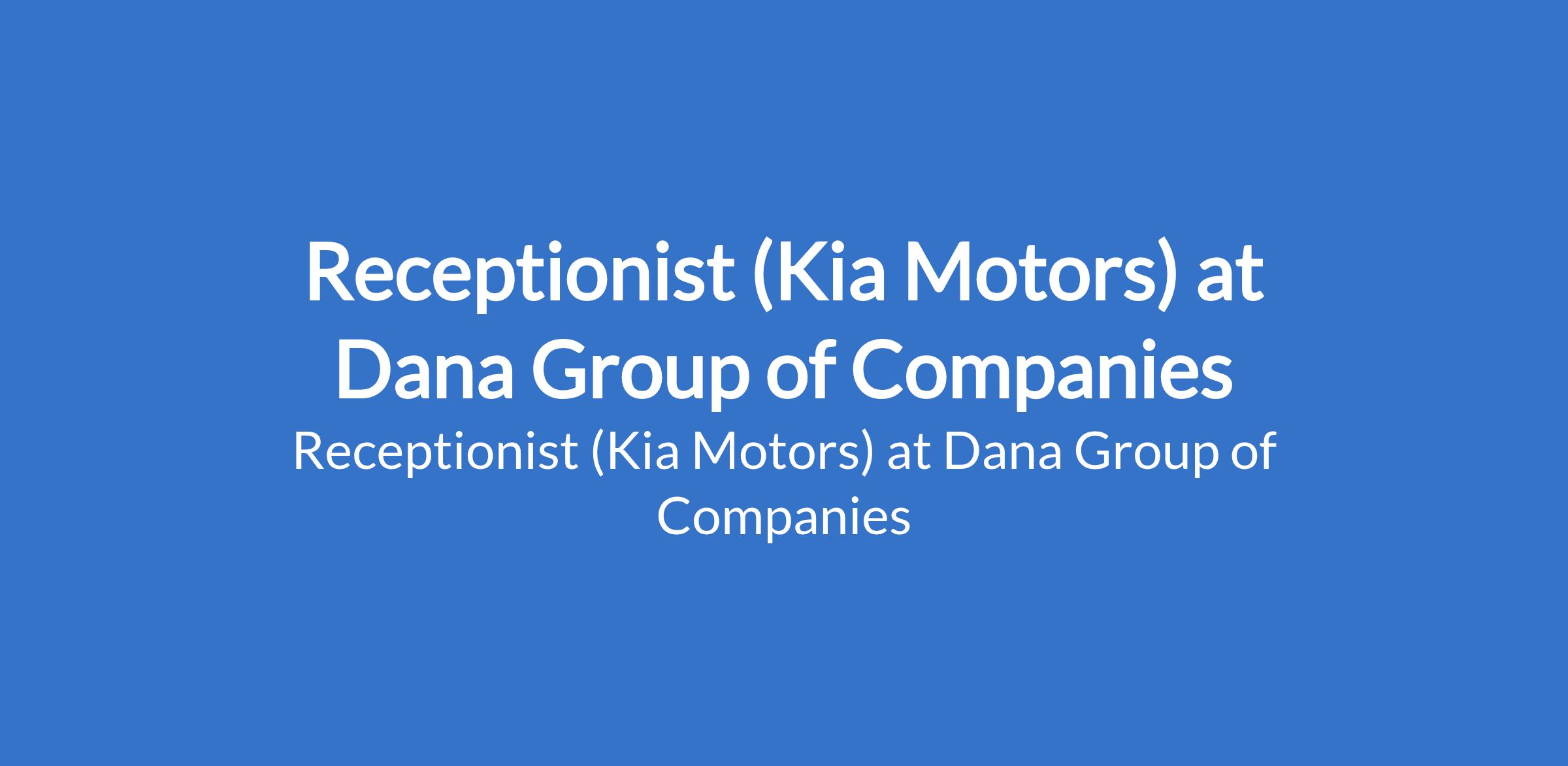 Dana Group of Companies is recruiting to fill the position of: Receptionist (Kia Motors). The position is located in Victoria Island, Lagos State. Salary: N150,000 - N200,000 / month. Interested candidates should possess a Bachelors Degree in any field with 2-3 years of proven experience in a similar role.