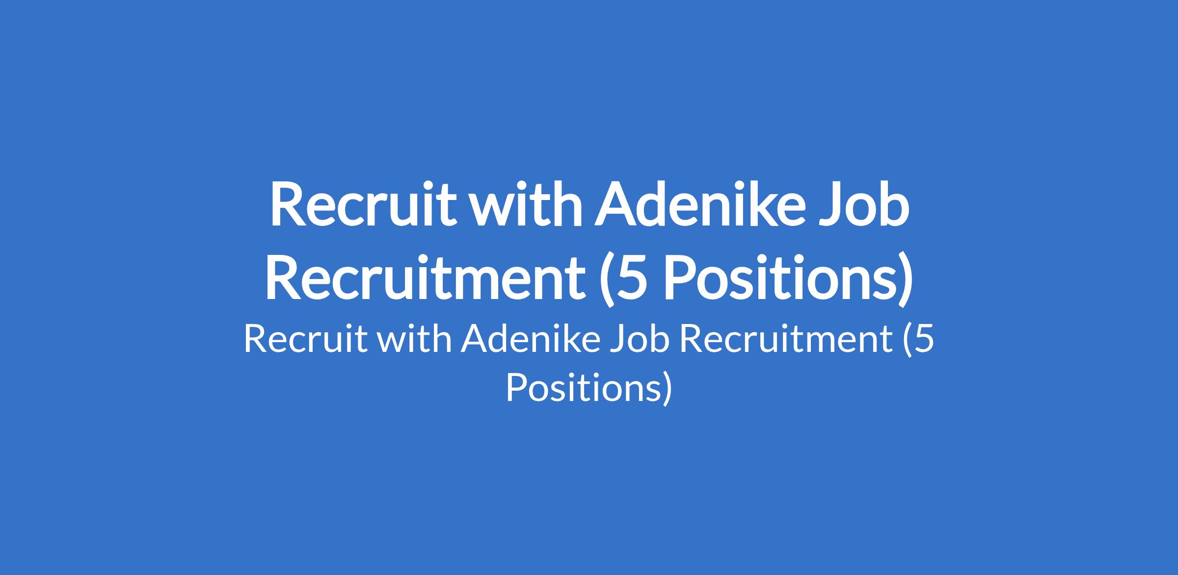 Recruit with Adenike Job Recruitment (5 Positions)