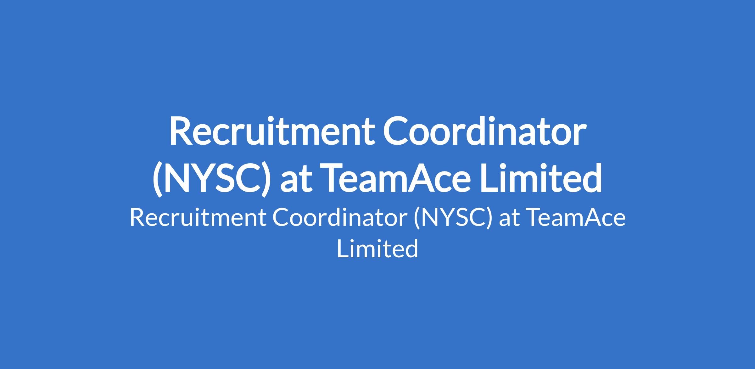TeamAce Limited is recruiting to fill the position of: Recruitment Coordinator (NYSC). The position is located in VI, Lagos State. Salary: N100,000 monthly. Interested candidates should possess a Bachelors Degree in any discipline and must be a current NYSC corps member.
