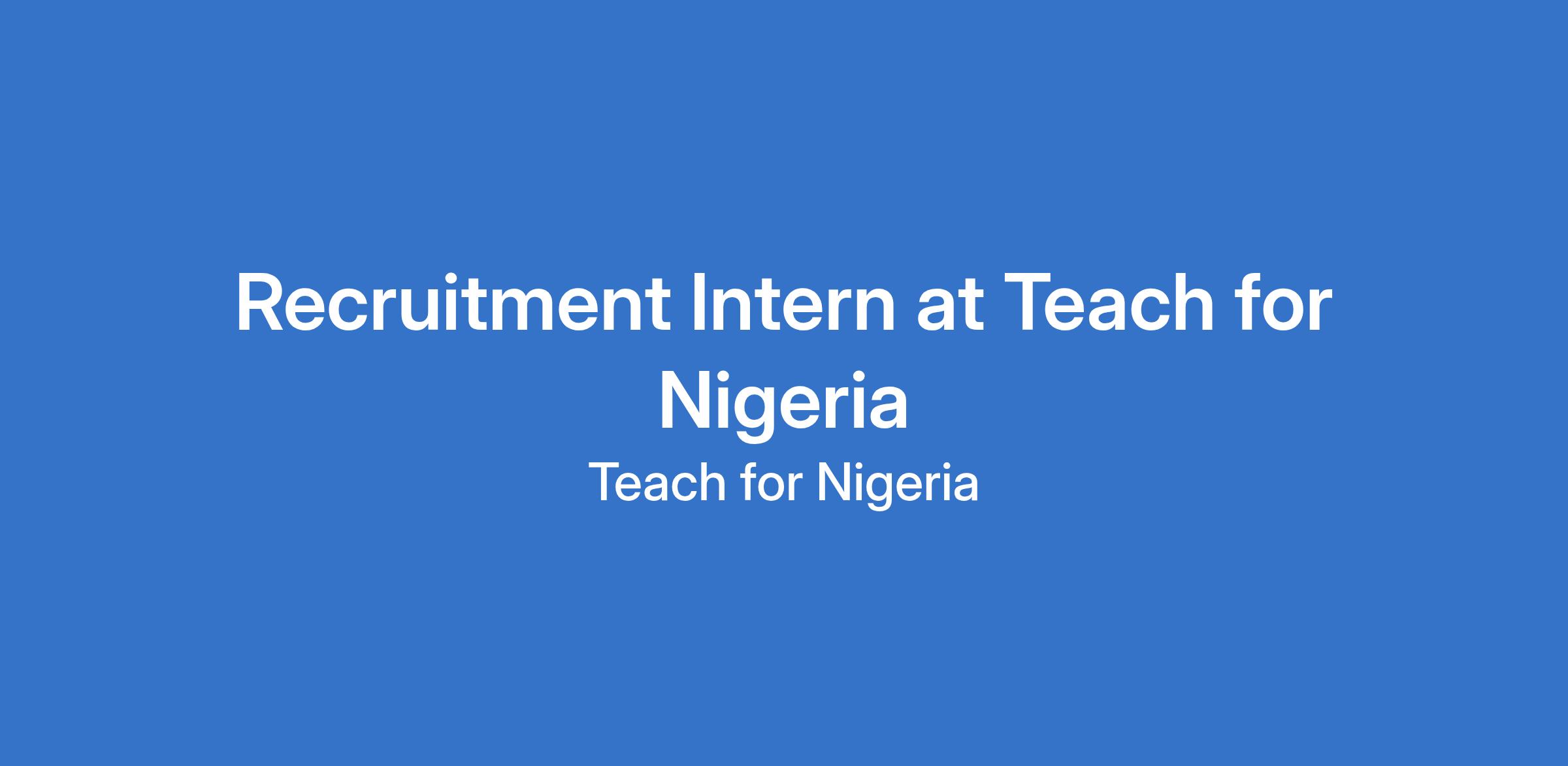 As a Recruitment Intern, you will play a key role in supporting the Recruitment, Selection, and Matriculation (RSM) team to deliver a fair, high-quality process that identifies and secures talented individuals committed to tackling educational inequity in Nigeria.