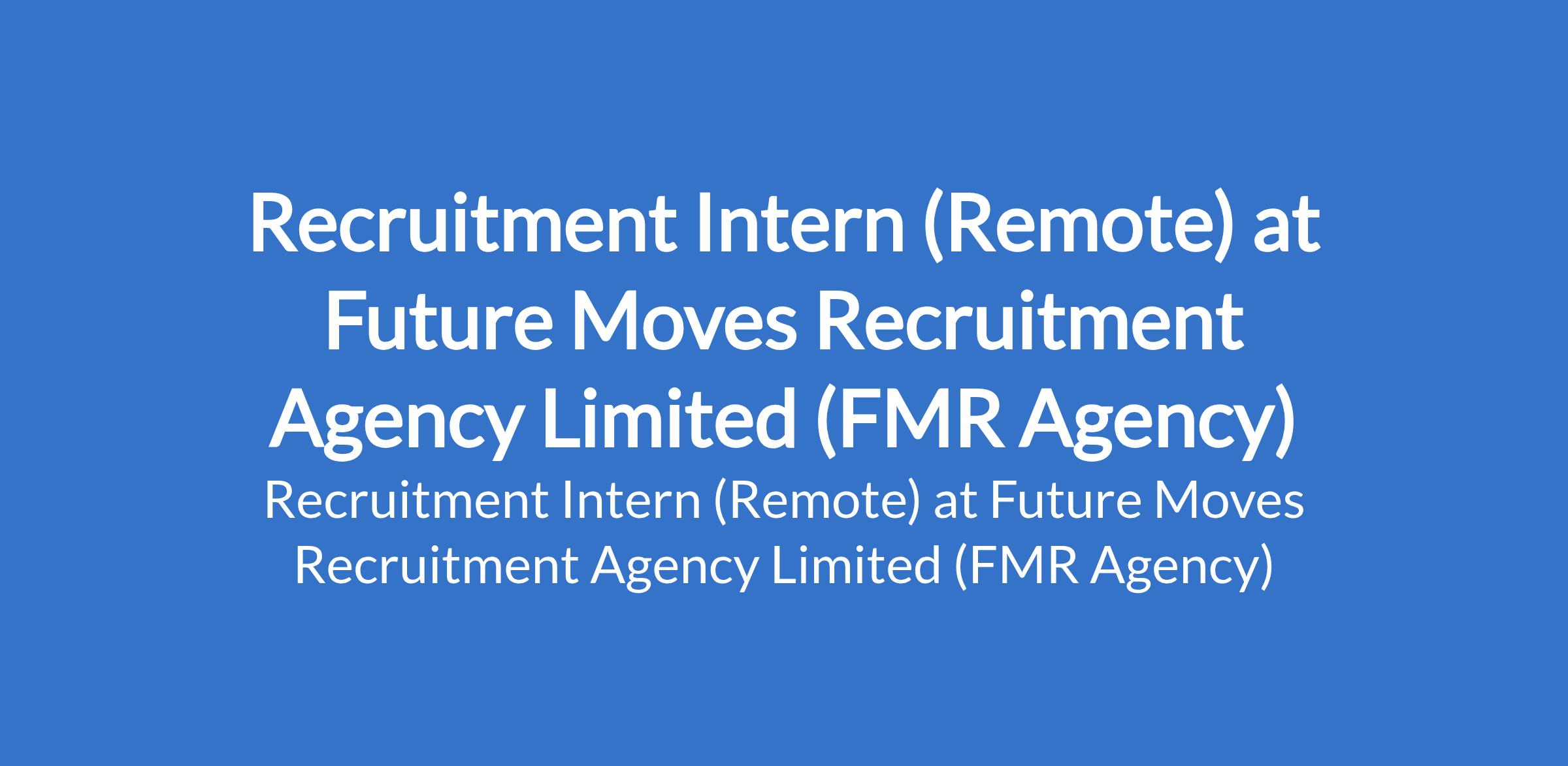 Recruitment Intern (Remote) at Future Moves Recruitment Agency Limited (FMR Agency)