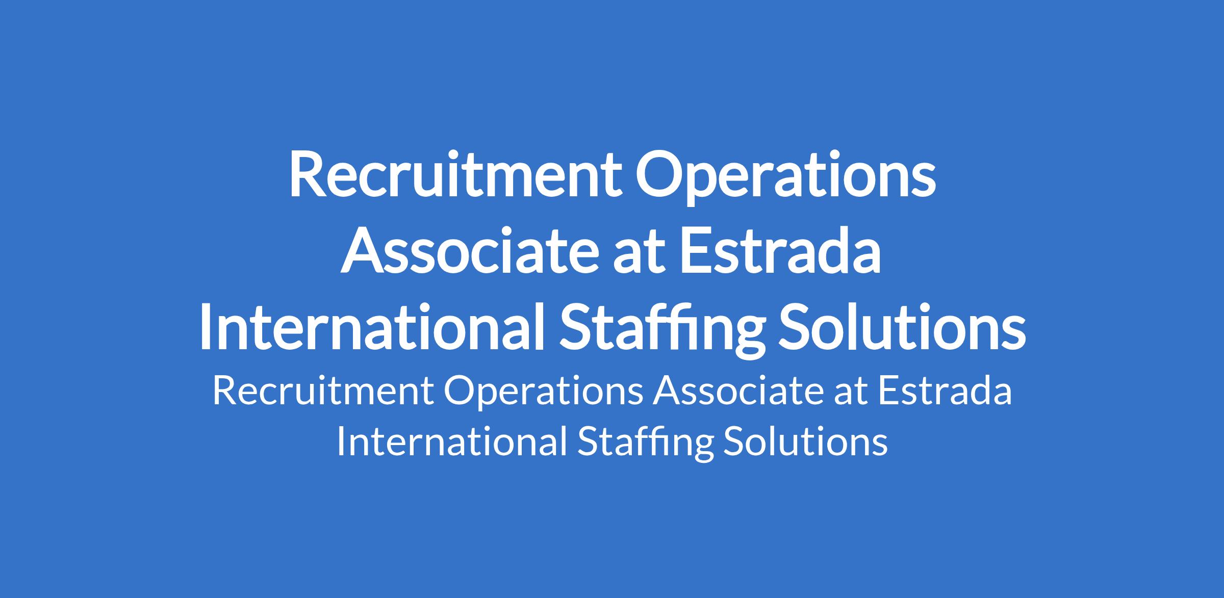 Estrada International Staffing Solutions is recruiting to fill the position of: Recruitment Operations Associate. The position is located in Surulere, Lagos State. Salary: N200,000 / month. Interested candidates should possess a Bachelors Degree (B.Sc/HND) in any discipline with a minimum of 2 years of core experience in operations, HR administration, HR, or recruitment role.