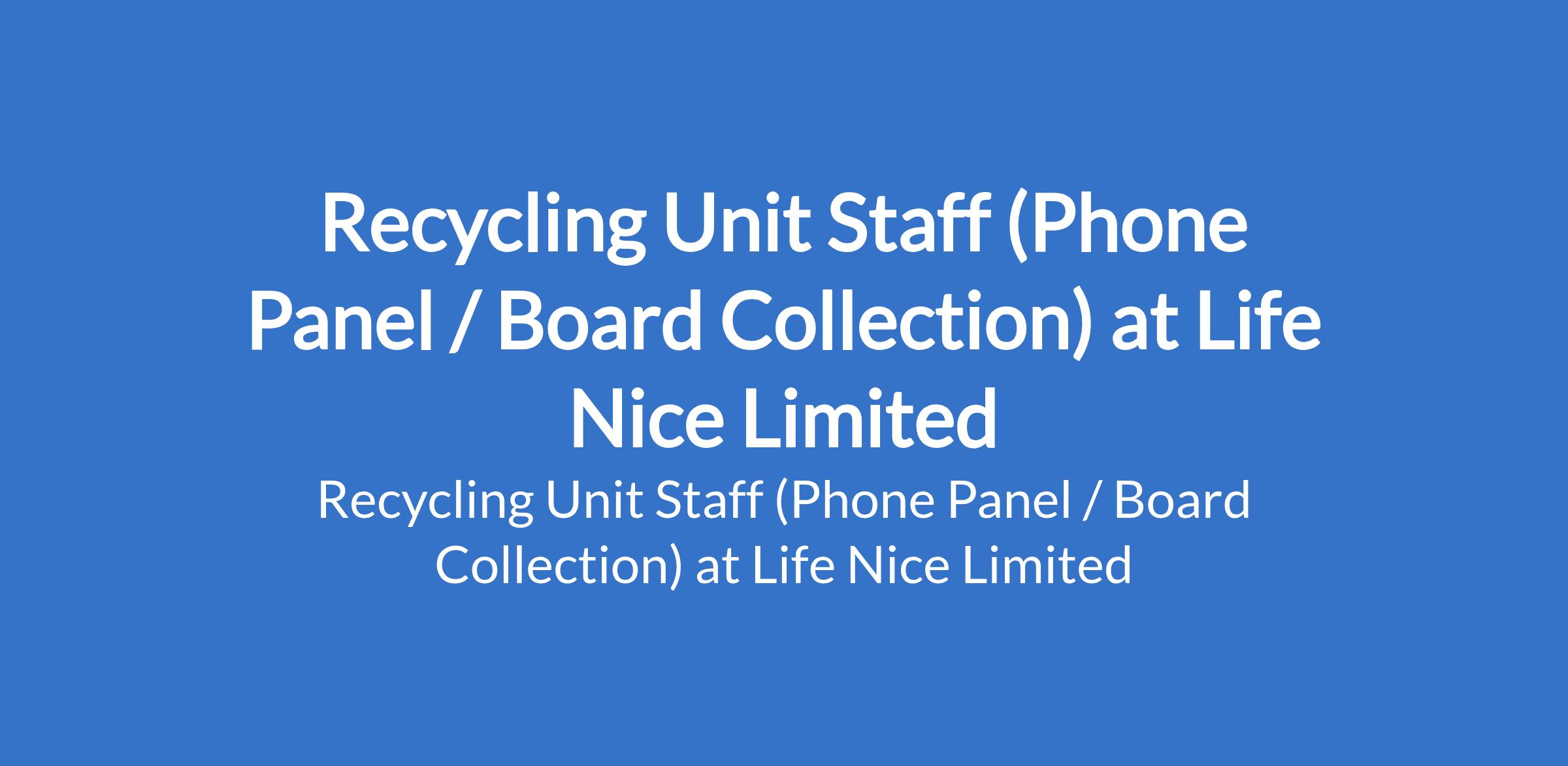 Life Nice Limited is recruiting to fill the position of: Recycling Unit Staff (Phone Panel / Board Collection). The position is required in open to all states in Nigeria except Ibadan, Abia, Abuja, and Port Harcourt. Interested candidates should possess minimum of an SSCE qualification, must be ready and willing to work (field-based role) and ust be proactive, committed, and result-driven.