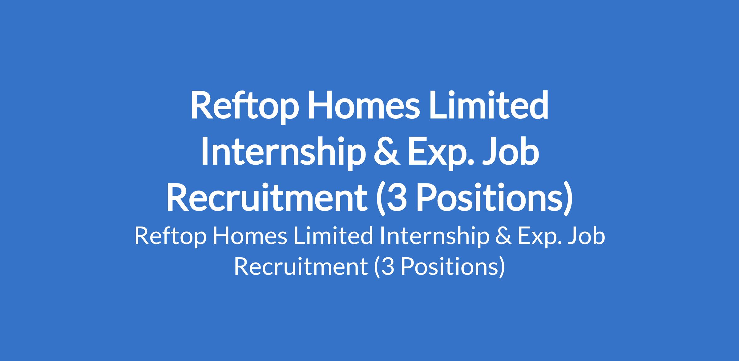 Reftop Homes Limited Internship & Exp. Job Recruitment (3 Positions)