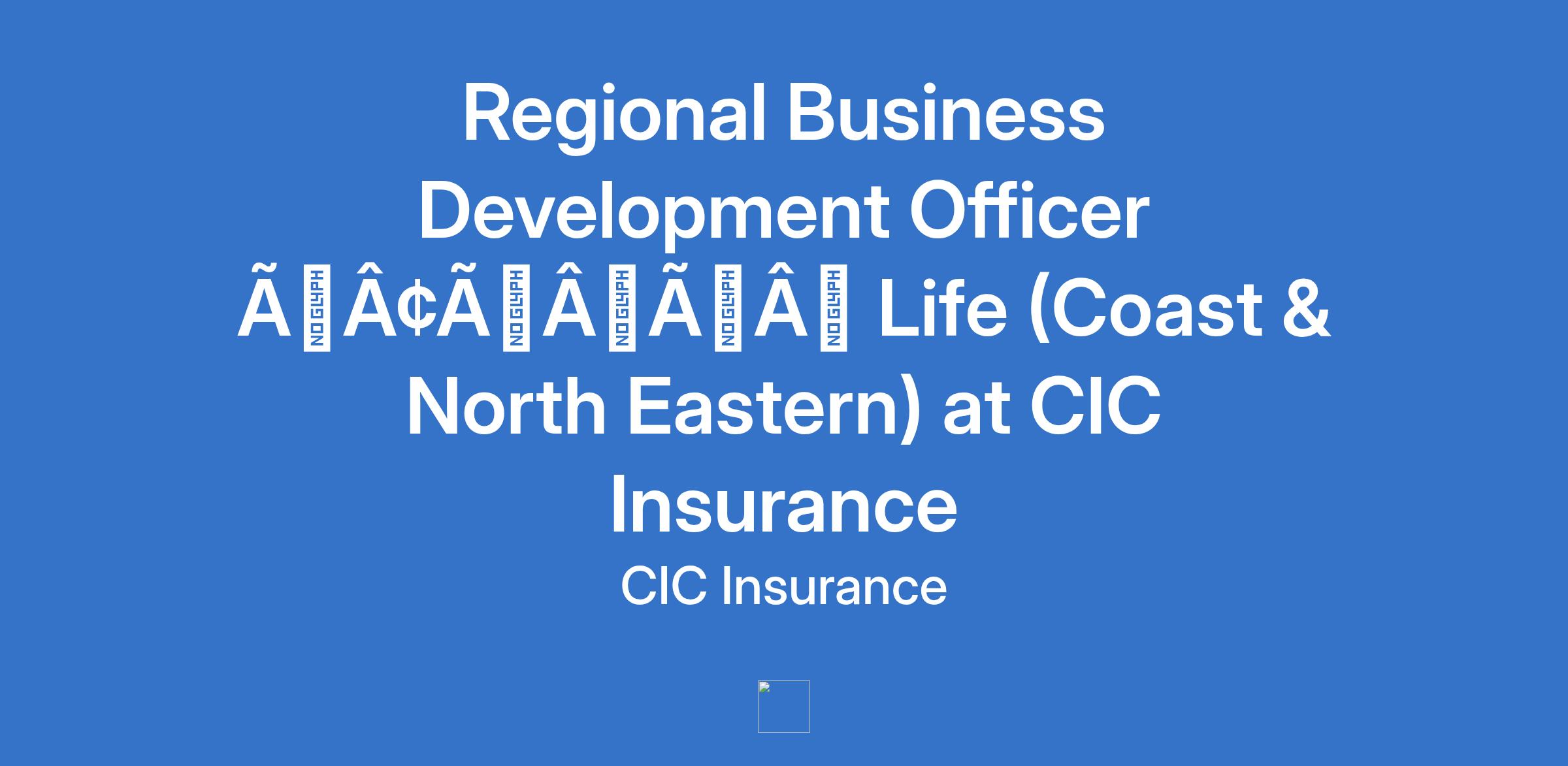 Regional Business Development Officer âÃÂàLife (Coast & North Eastern) at CIC Insurance
