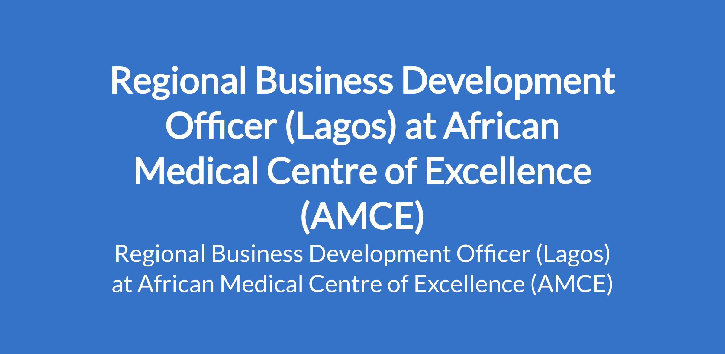 African Medical Centre of Excellence (AMCE) is recruiting to fill the position of: Regional Business Development Officer. The position is located in Lagos State. Interested candidates should possess a Bachelors Degree in Business Administration, Marketing, or a related field with a minimum of 3 years of proven B2B field sales experience, with a strong preference for candidates from the healthcare, pharmaceutical, or medical services sector in Lagos.