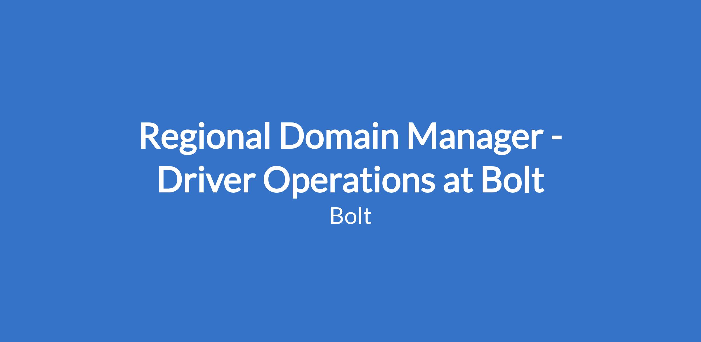 Regional Domain Manager - Driver Operations at Bolt