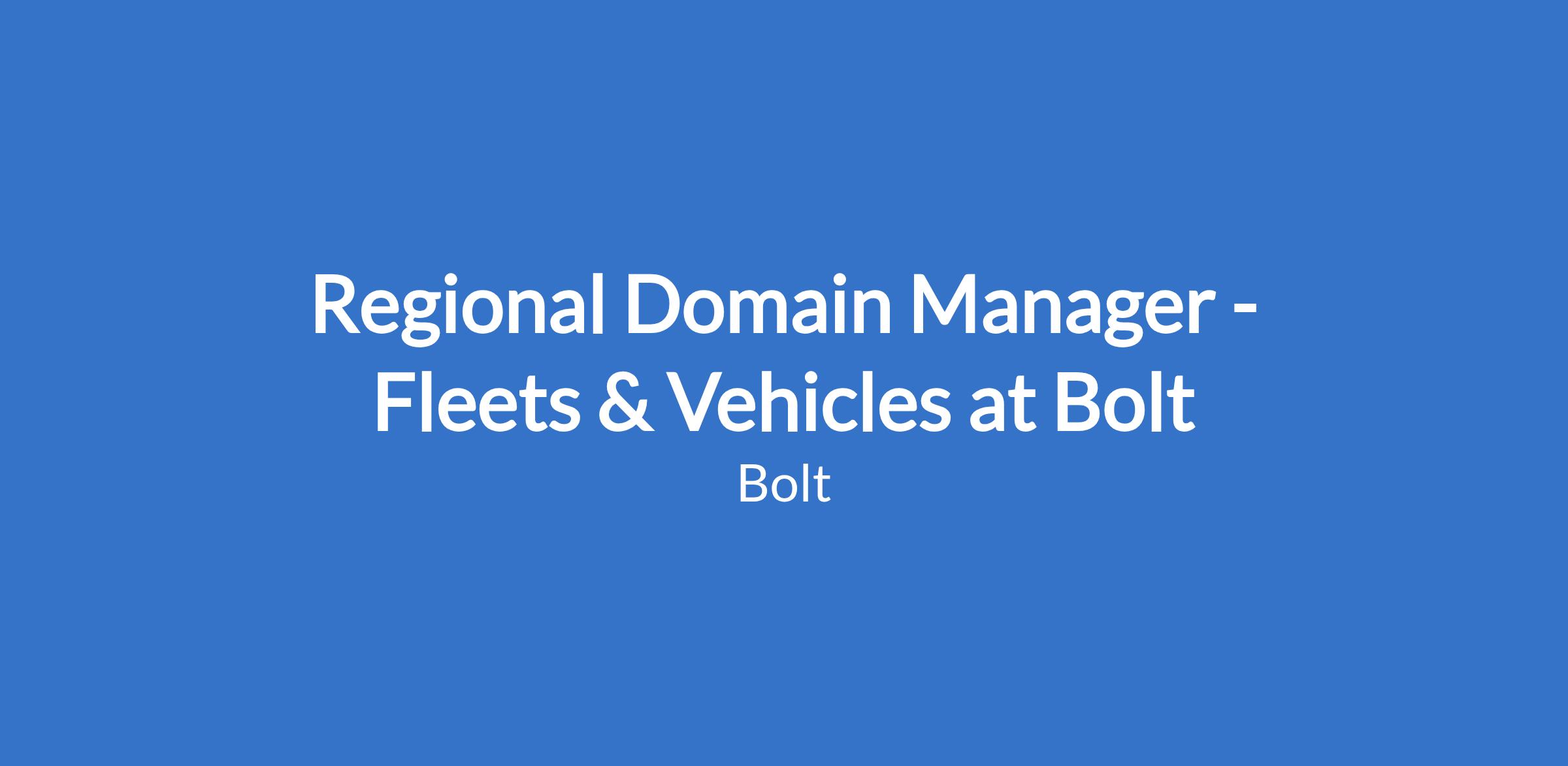 Regional Domain Manager - Fleets & Vehicles at Bolt