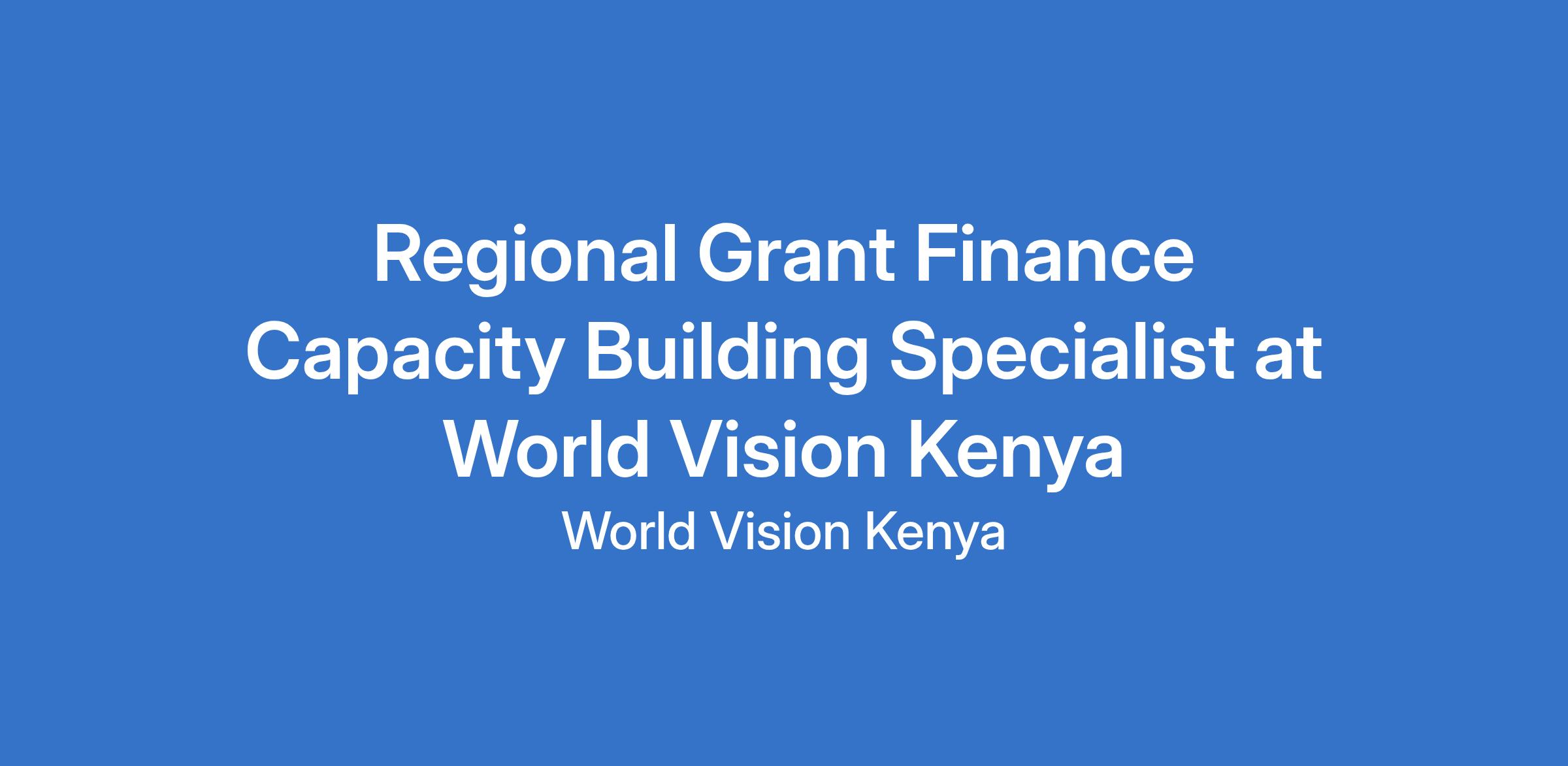 Regional Grant Finance Capacity Building Specialist at World Vision Kenya