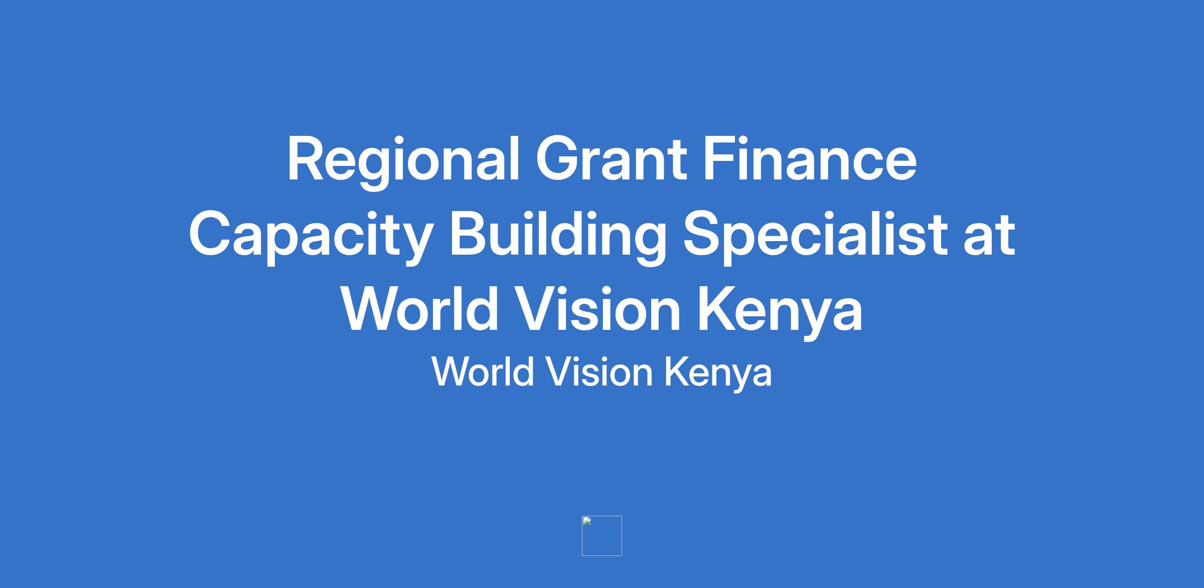 Regional Grant Finance Capacity Building Specialist at World Vision Kenya