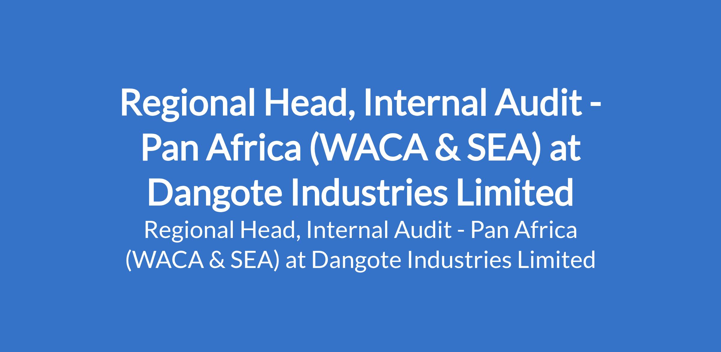 Dangote Industries Limited is recruiting to fill. the position of: Regional Head, Internal Audit - Pan Africa (WACA & SEA). The position is located in Lagos State. Interested candidates should possess a BSc / HND qualification in Accounting or any related discipline with a minimum of 15 years relevant work experience, 8 of which must be at a senior management level.