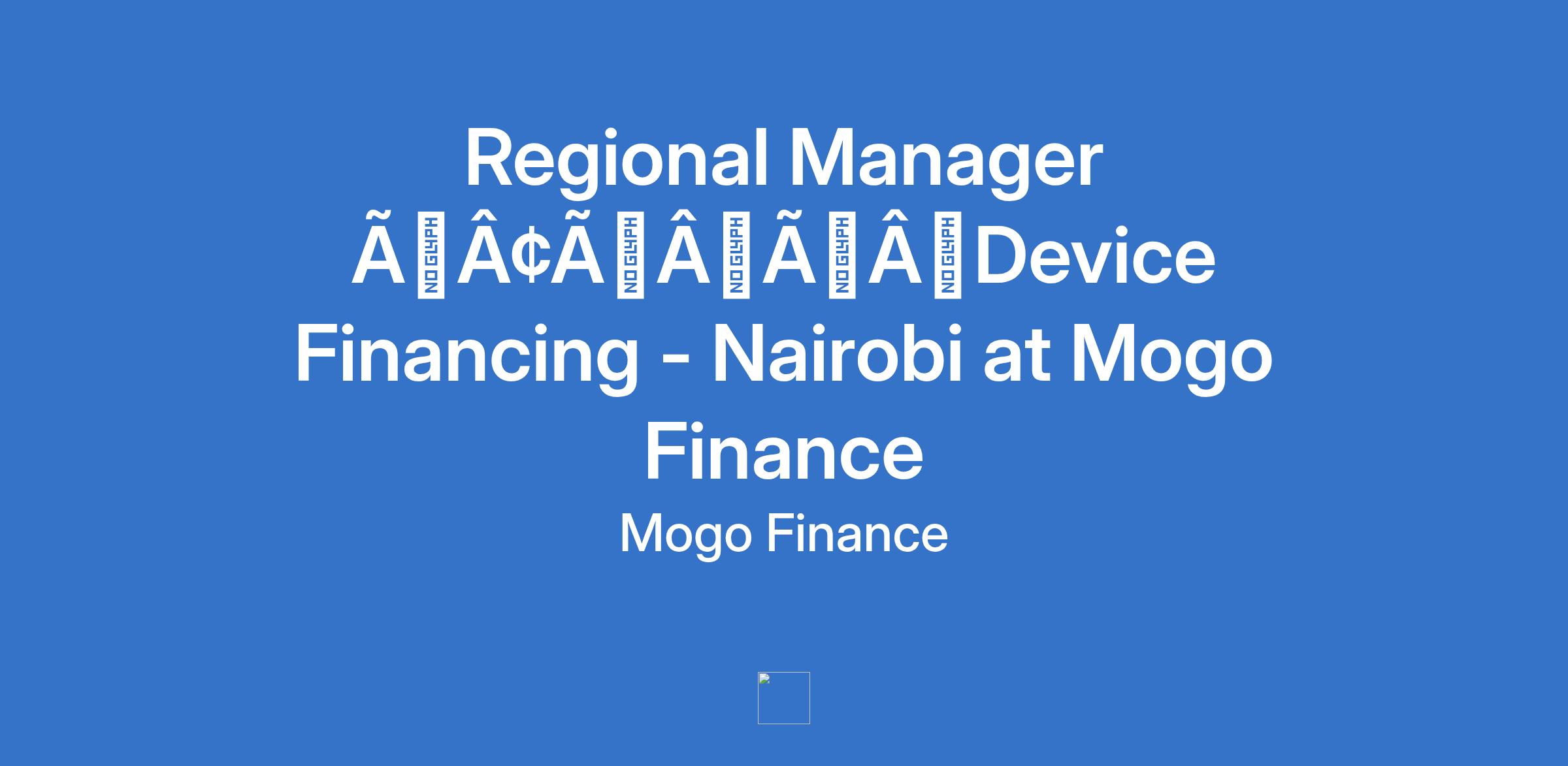 Regional Manager âÃÂÃÂDevice Financing - Nairobi at Mogo Finance