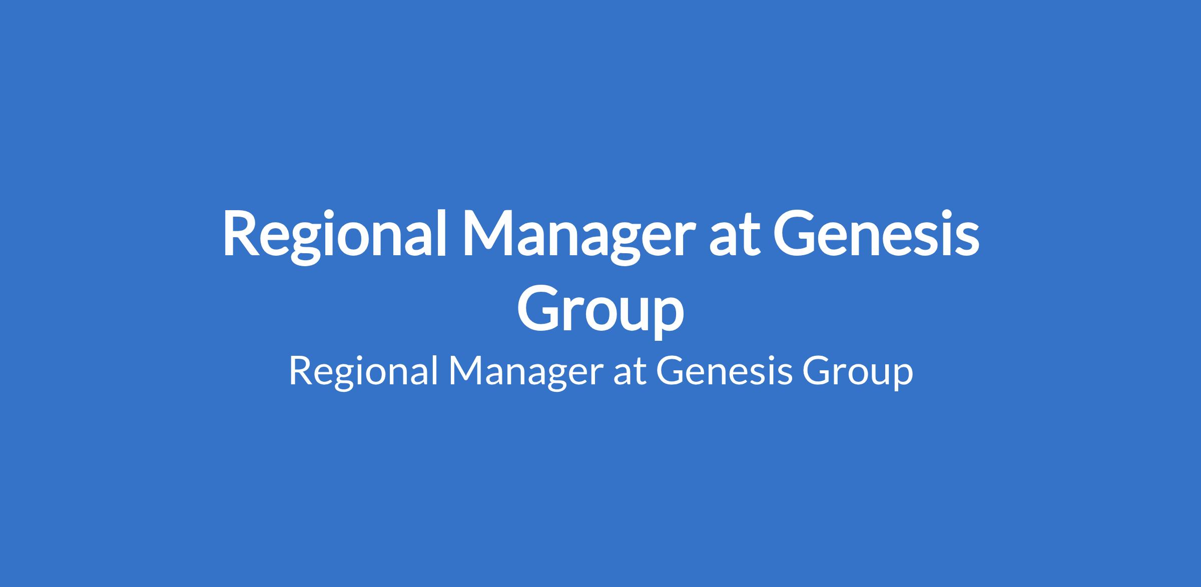 Regional Manager at Genesis Group