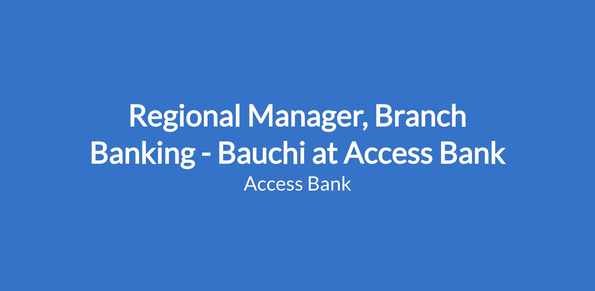 Regional Manager, Branch Banking - Bauchi at Access Bank