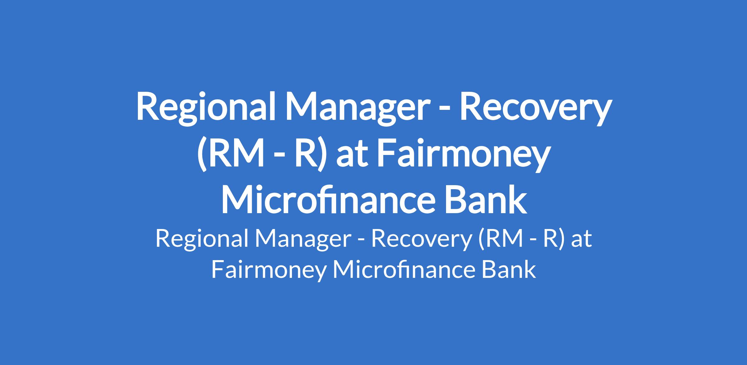 Fairmoney Microfinance Bank is recruiting to fill the position of: Regional Manager - Recovery (RM - R). The position is located in Ikeja, Lagos State. Interested candidates should possess a Bachelors Degree in Business, Finance, Economics, Accounting, or related fields (MBA or professional certification is an advantage), with 6+ years of experience in field recovery within financial services/lending.