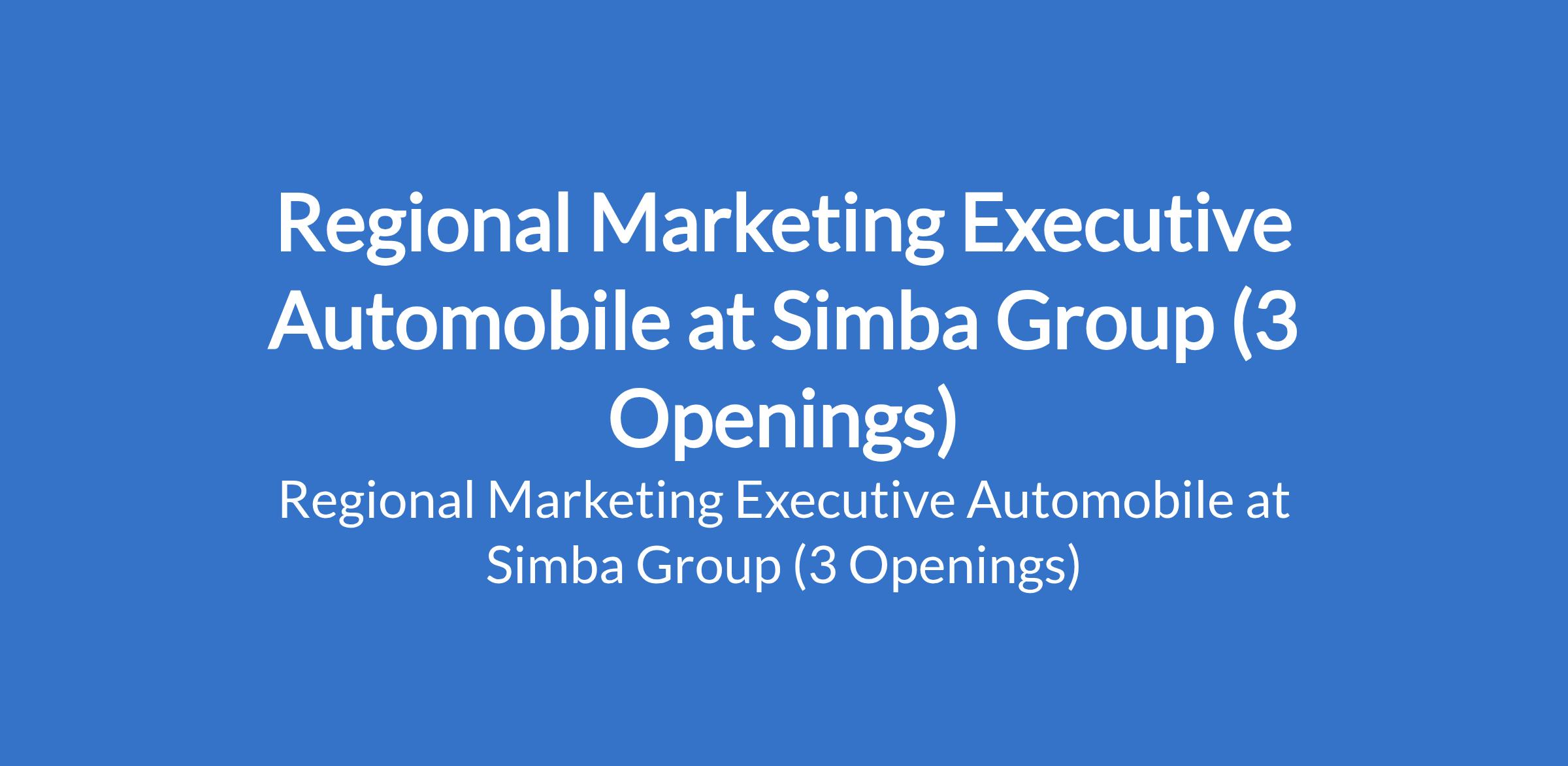 Simba Group is recruiting to fill the position of: Regional Marketing Executive Automobile. The position is located in Abuja (FCT), Enugu, and Lagos States. Interested candidates should possess a Bachelors Degree in Marketing, Business Administration, or related fields (MBA preferred) with 5 7 years of experience in marketing, and at least 3 years in the automobile industry (2W/3W preferred).