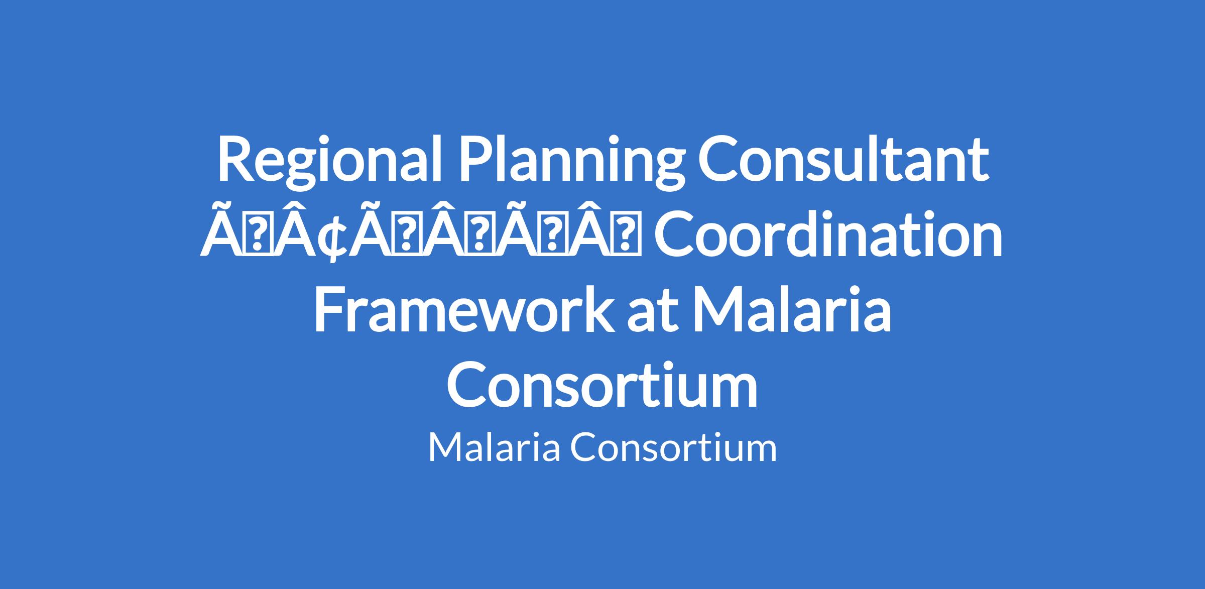 Regional Planning Consultant âÃÂàCoordination Framework at Malaria Consortium