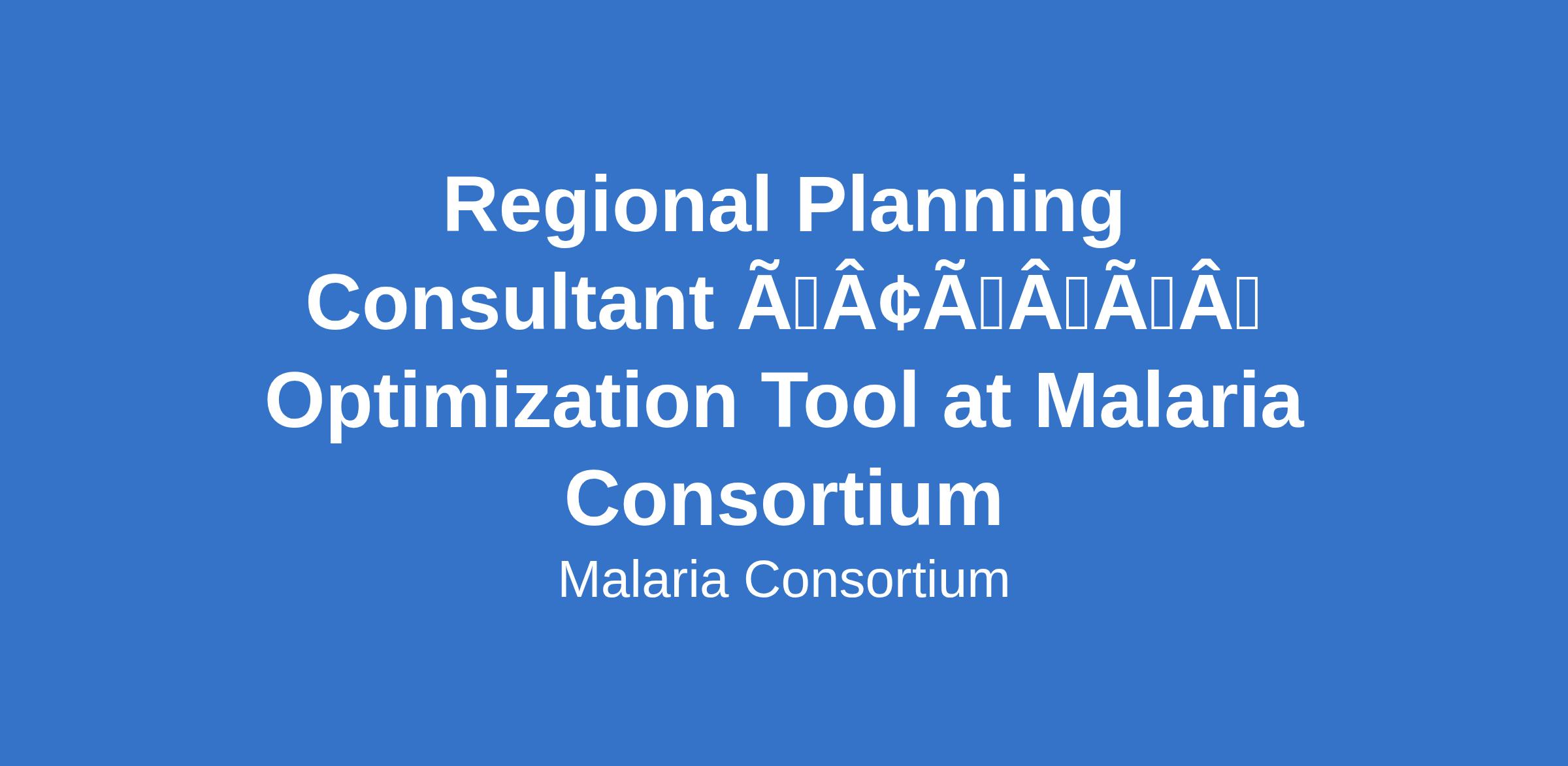 Regional Planning Consultant âÃÂàOptimization Tool at Malaria Consortium