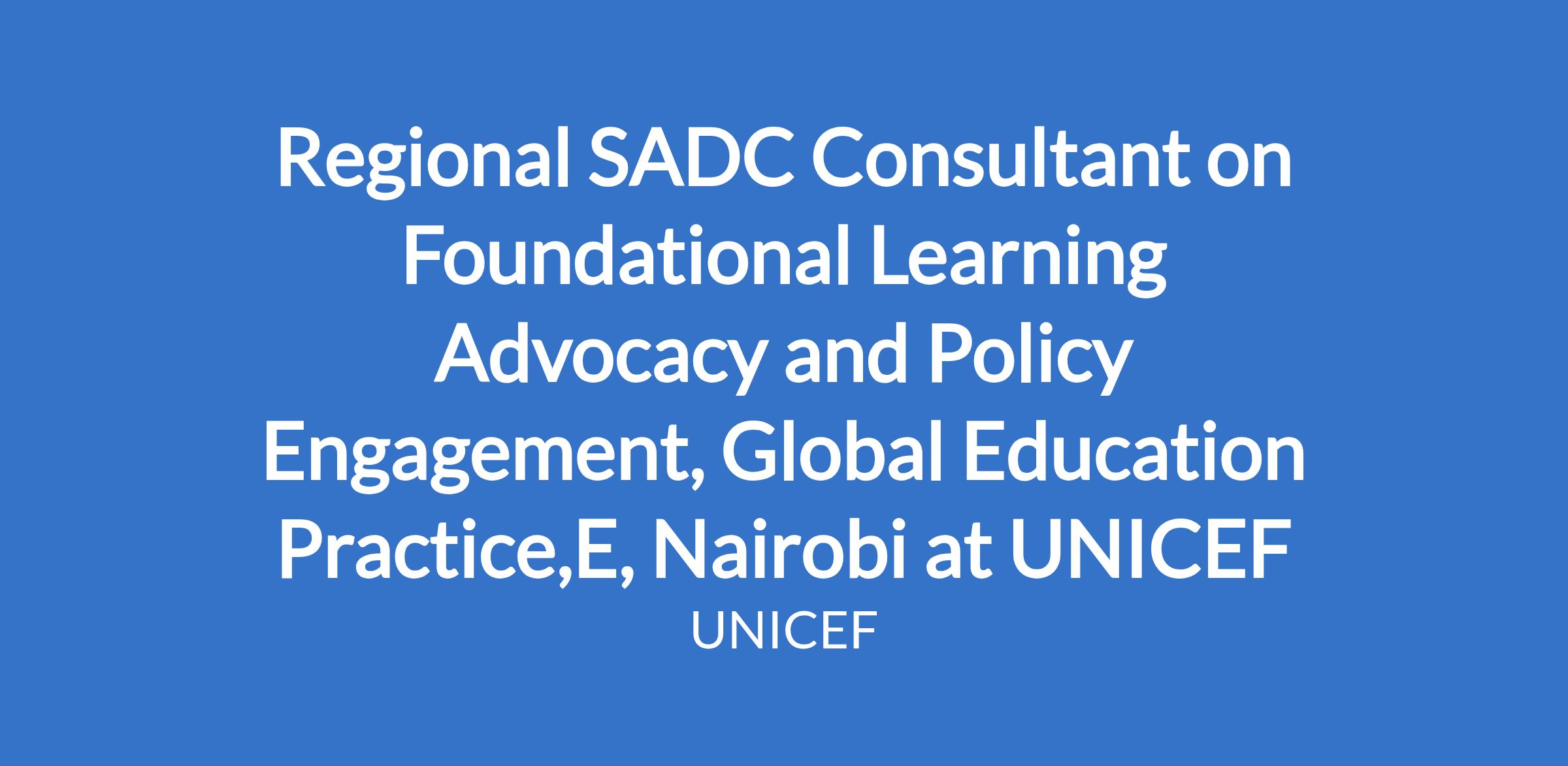Regional SADC Consultant on Foundational Learning Advocacy and Policy Engagement, Global Education Practice,E, Nairobi at UNICEF