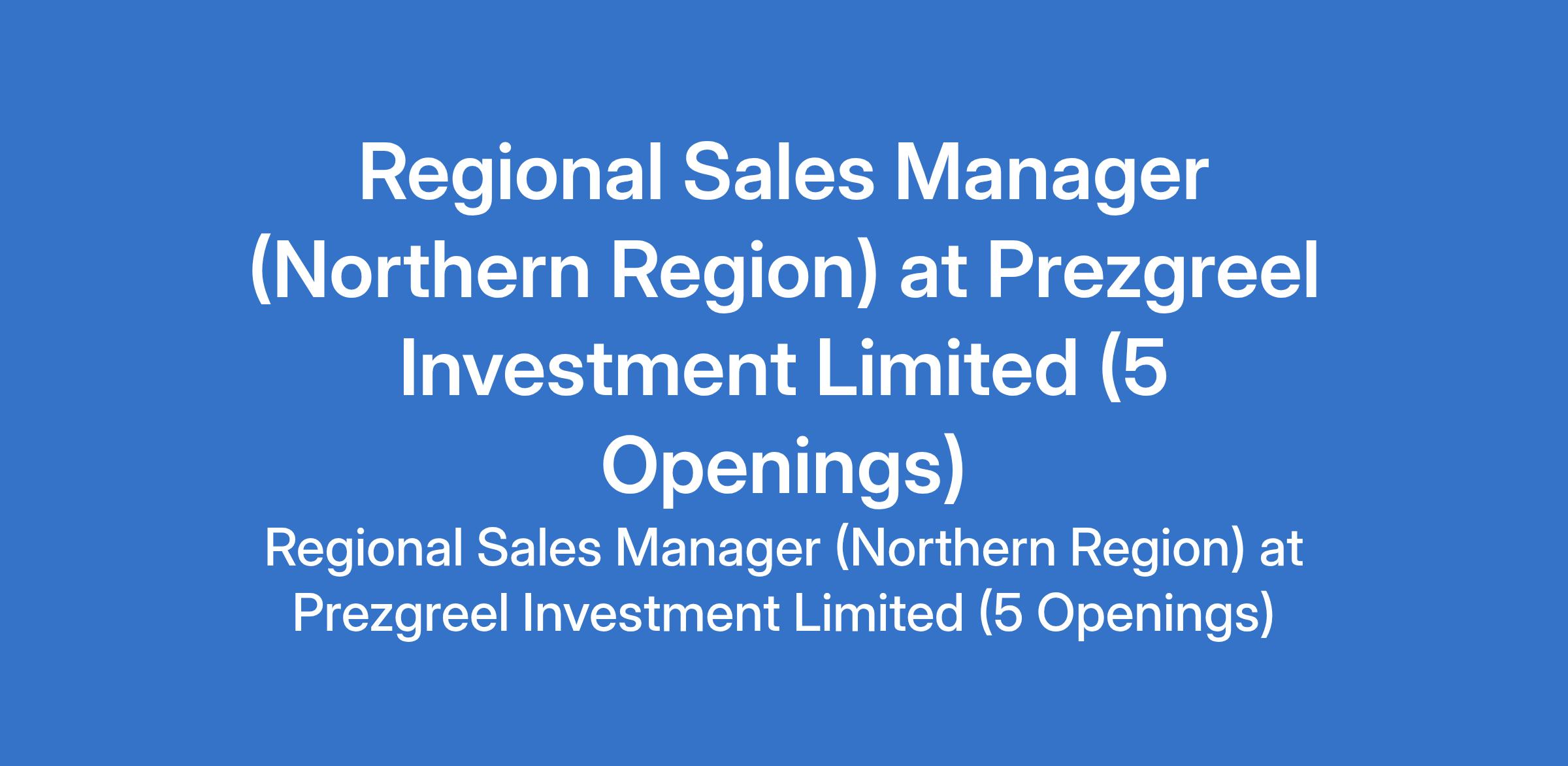 Prezgreel Investment Limited is recruiting to fill the position of: Regional Sales Manager (Northern Region). The position is located in Bauchi, Gombe, Kano, Sokoto and Yobe States. Interested candidates should possess a Bachelors Degree in Medical, Life Sciences, or related fields with a minimum of 5 years experience in medical or healthcare sales, with at least 2 years in a supervisory or managerial role and must be resident in any of the above listed locations and familiar with healthcare institutions in the region.