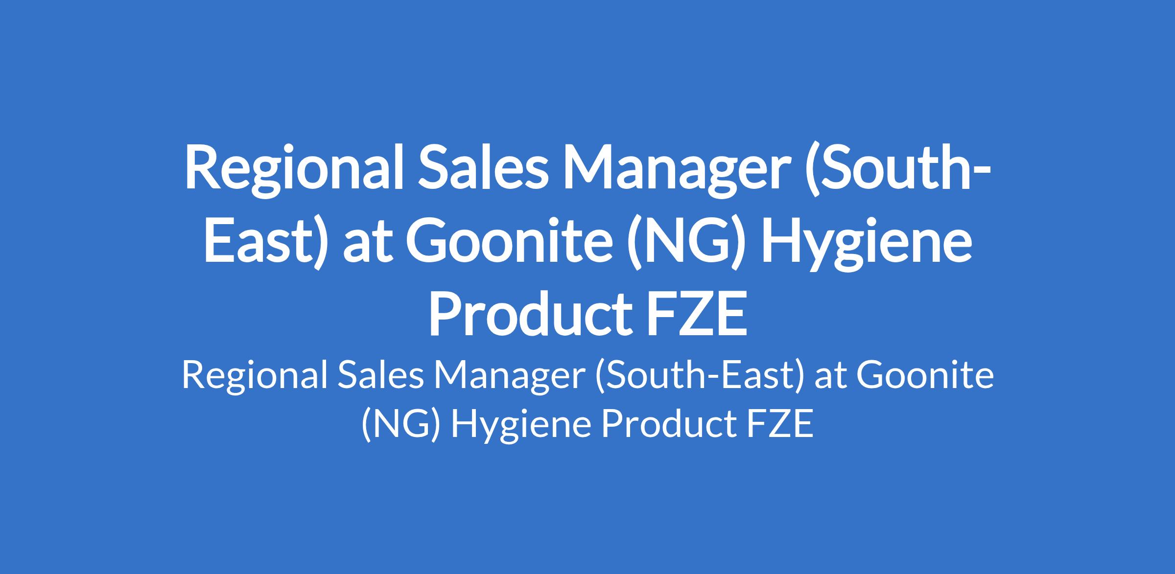 Goonite (NG) Hygiene Product FZE is recruiting to fill the position of: Regional Sales Manager. The position is located in South-East, Nigeria. Interested candidates should possess a Bachelor's Degree in Business Administration, Marketing, or a related field with 4 6 years of sales experience in FMCG, preferably in hygiene, personal care, or consumer goods