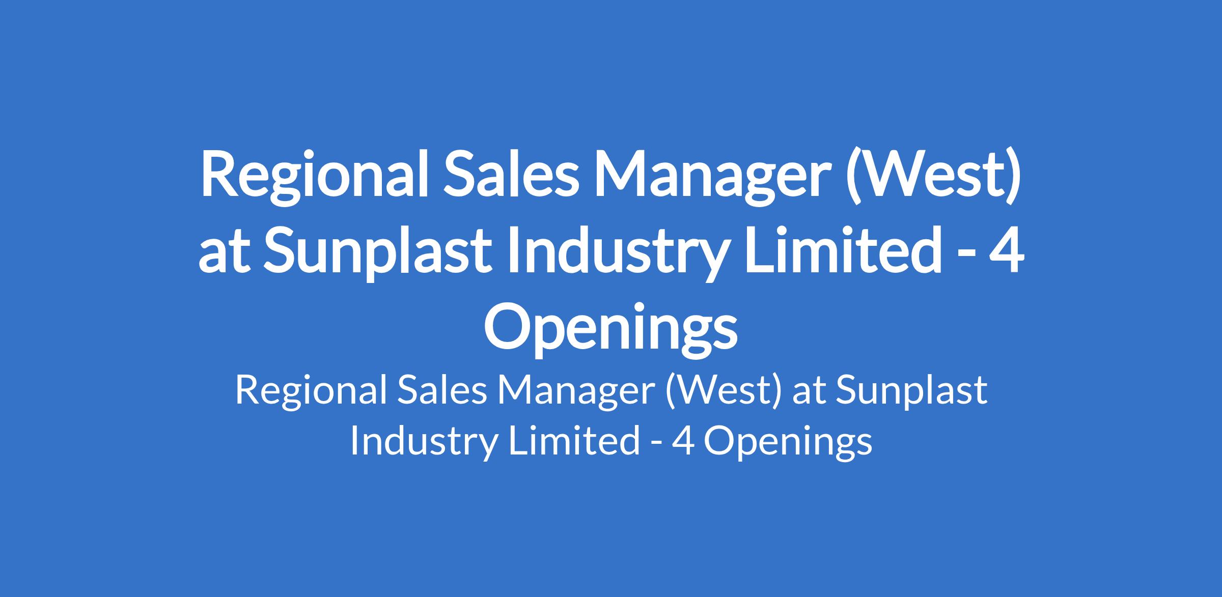 Sunplast Industry Limited is recruiting to fill the position of: Regional Sales Manager (West). The position is located in Ogun, Lagos, Osun and Oyo States. Interested candidates should possess Bachelors Degree in Business, Marketing, Engineering, or a related field with 8-10 years sales experience in plastic manufacturing or related industrial sectors.