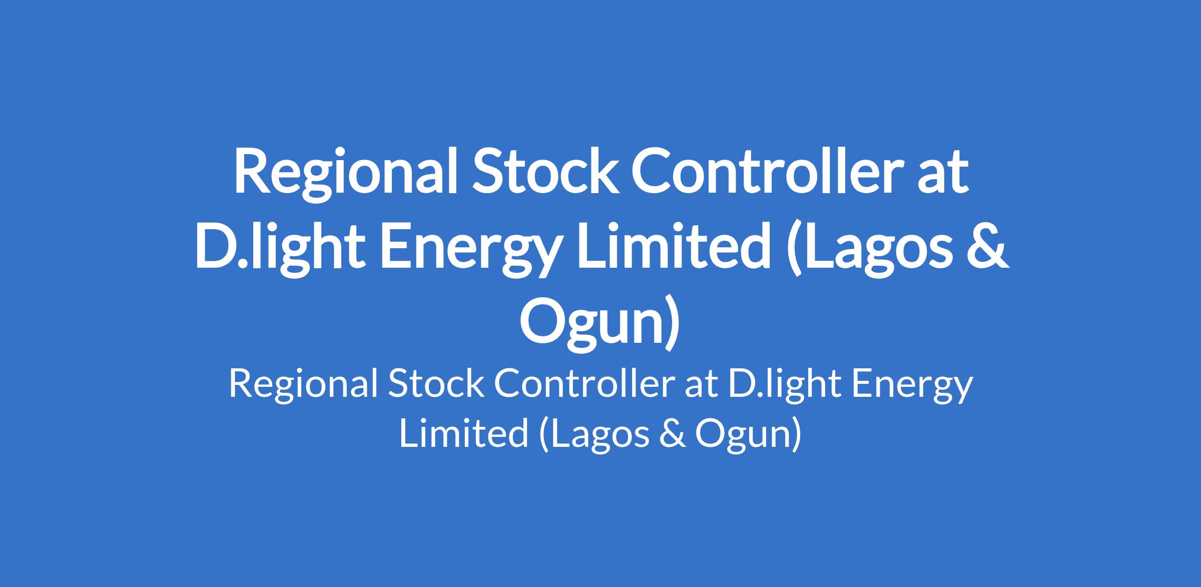 D.light Energy Limited is recruiting to fill the position of: Regional Stock Controller. The position is located in Ogun and Lagos States. Interested candidates should possess a Bachelors Degree in a relevant field with 3 4 years of relevant experience inclusive of 2 years managerial experience; having a Masters degree will be an added advantage.