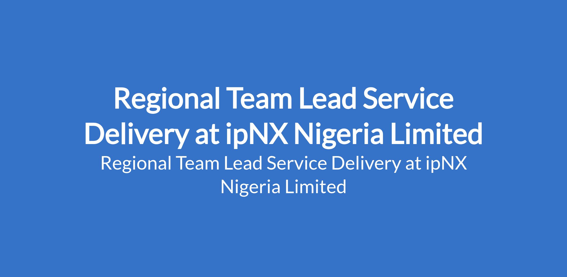 ipNX Nigeria Limited is recruiting to fill the position of: Regional Team Lead Service Delivery. The position is located in Abuja (FCT). Interested candidates should possess a Bachelors Degree in Engineering, Computer Science, Telecommunications, or related fields with a minimum 2.1 or upper credit and 5 8 years experience in service delivery, network operations, or field engineering