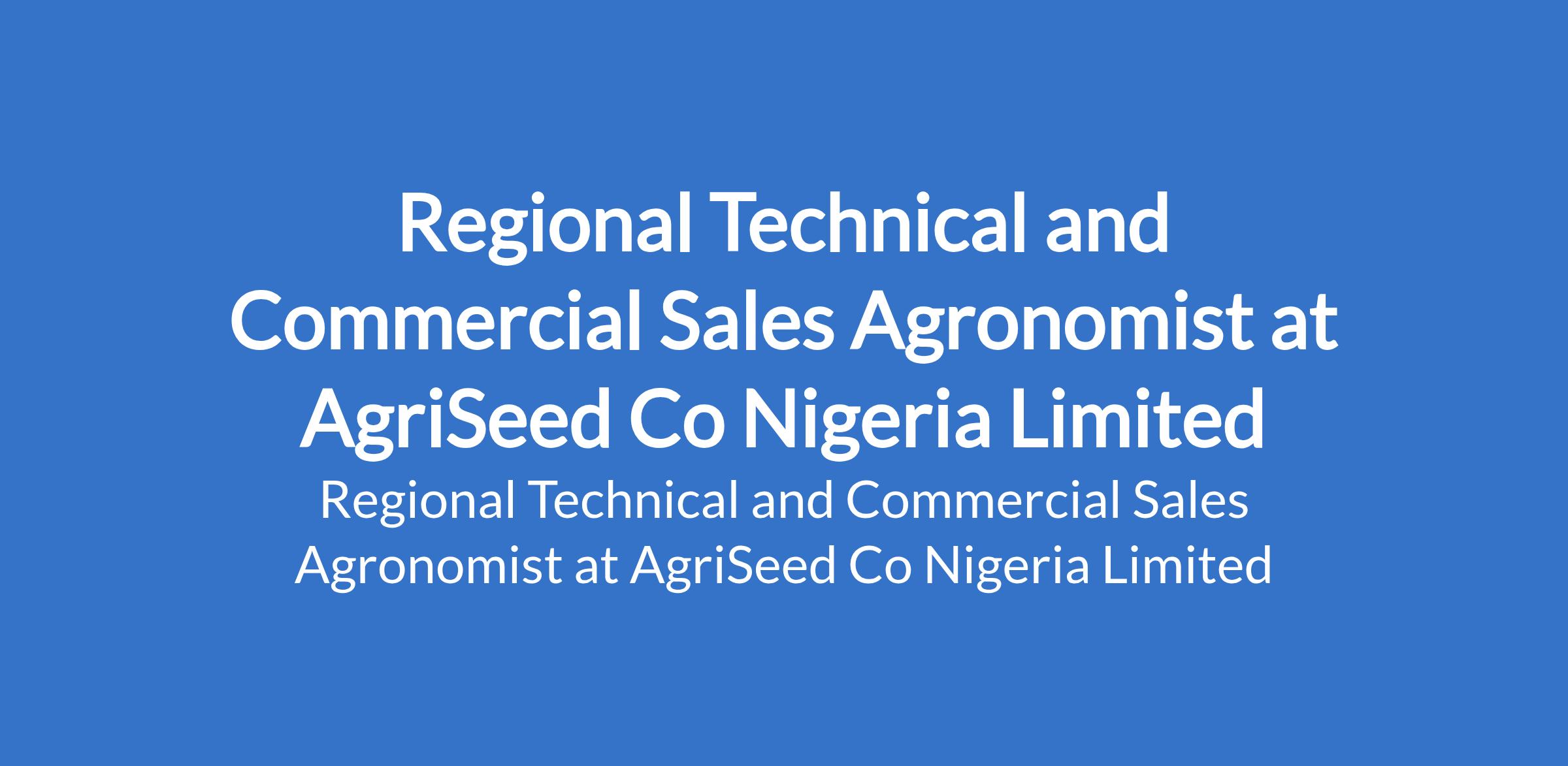 AgriSeed Co Nigeria Limited is recruiting to fill the position of: Regional Technical and Commercial Sales Agronomist. The position is located in Oyo State. Interested candidates should possess a relevant qualification with a minimum of 3 years of experience.