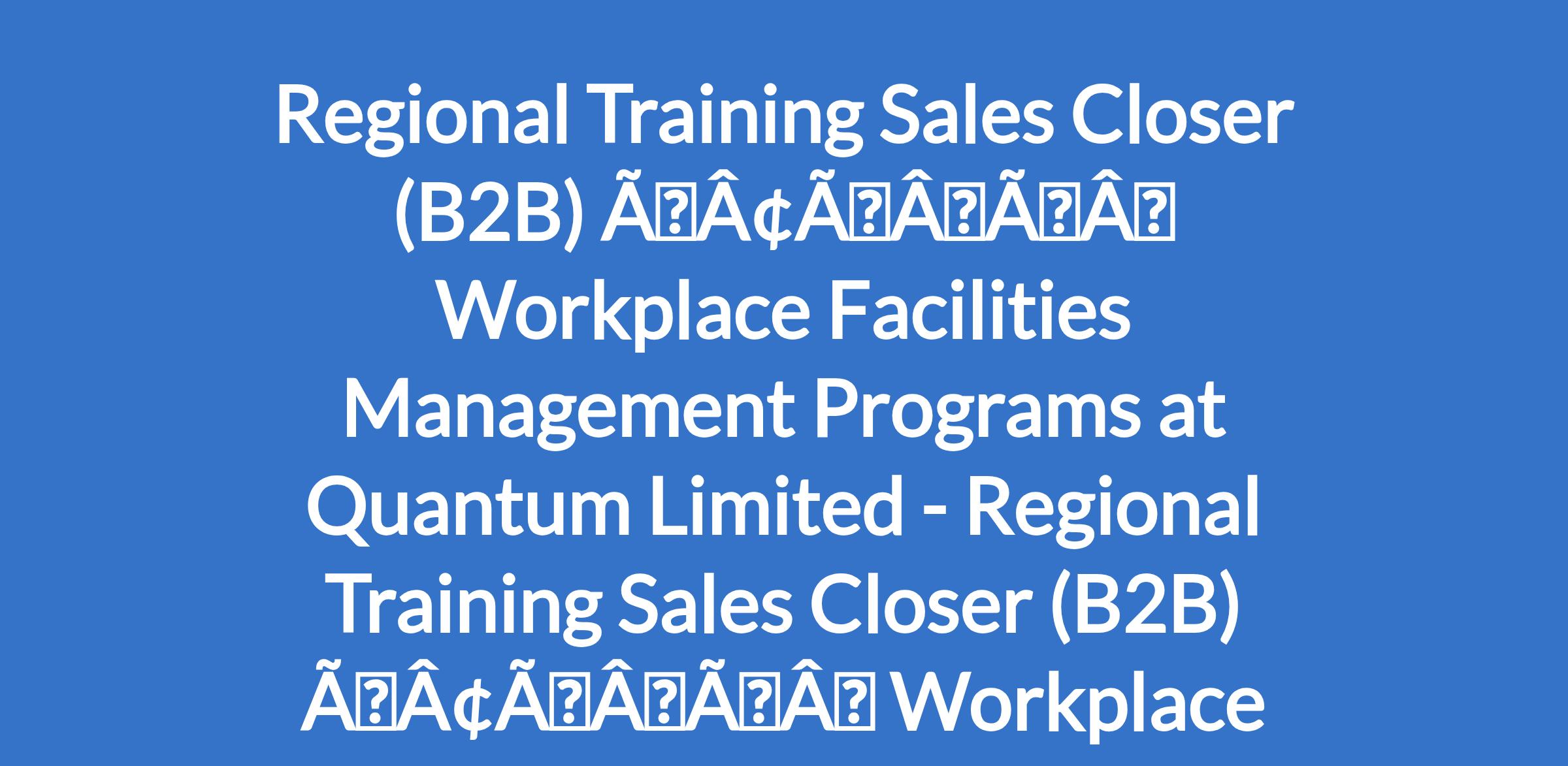 Regional Training Sales Closer (B2B) âÃÂàWorkplace Facilities Management Programs at Quantum Limited - Regional Training Sales Closer (B2B) âÃÂàWorkplace Facilities Management Programs